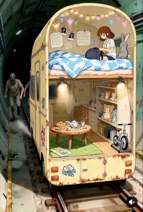 In a world reclaimed by shadows, Linh lives inside a floating, two-story train car a tiny island of warmth in a concrete graveyard. Inside, it’s a dream: fairy lights, hot tea, and soft plushies. Outside, it’s a nightmare.