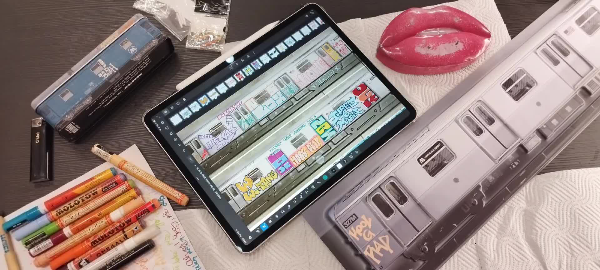 Today I am working on a custom gift for my dear fren, who is hip hop lover. I am using Molotow Praha supplies and I made a draft on my ipad first.