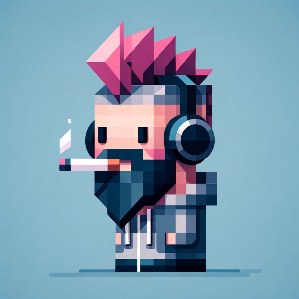 mfer #8314 traits: a simple hand-drawn stick figure with a soft smile and smoking a cig. They have no hair and are wearing black headphones