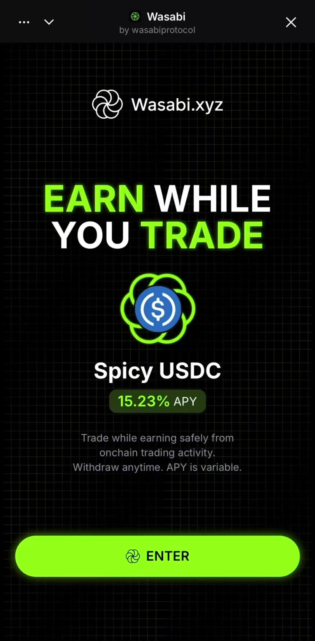 This week’s 🧭 mini app spotlight is @wasabiprotocol by @spicyaf
