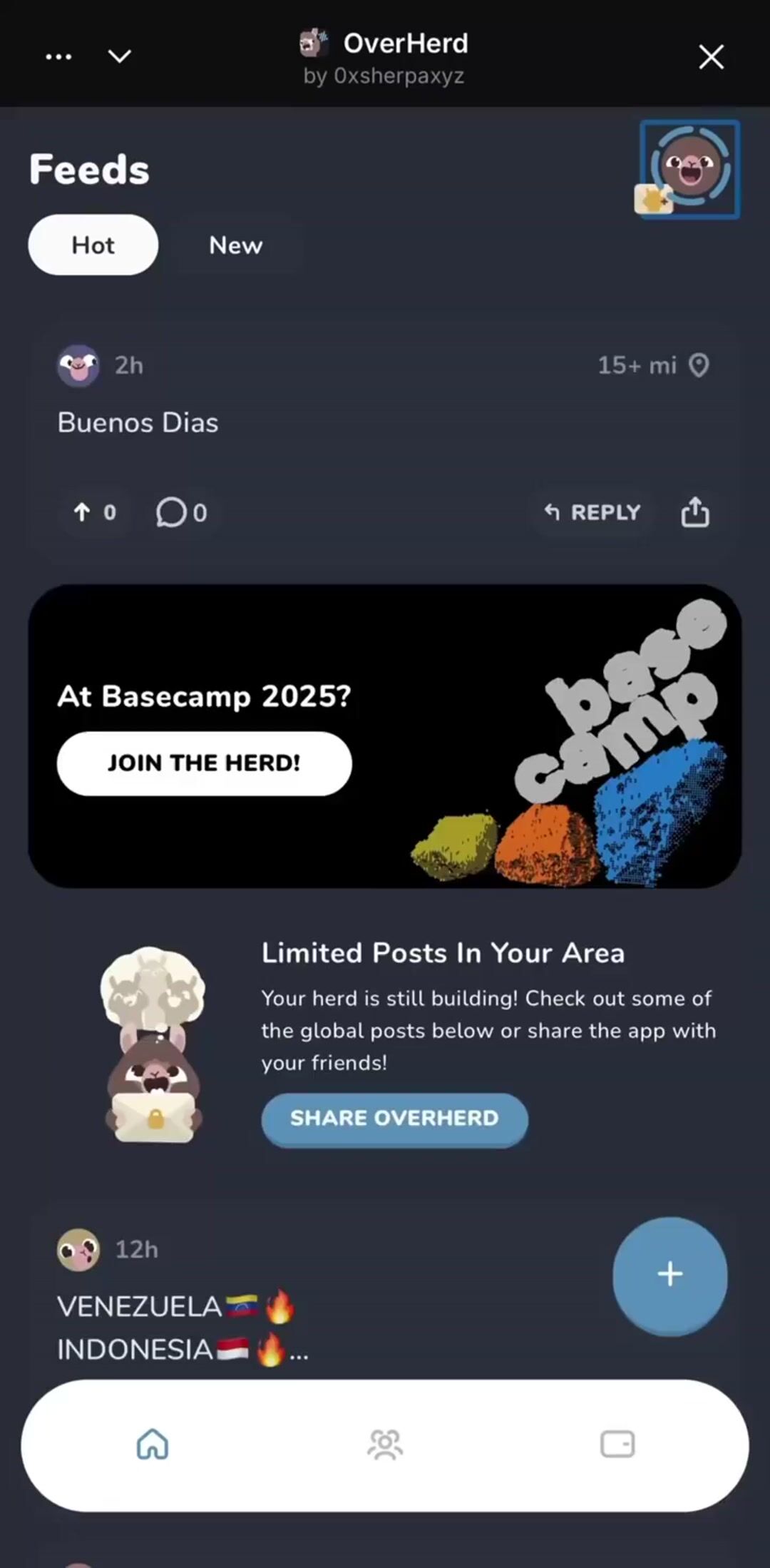 OverHerd is an anonymous social space where location and interest-based posts rise through upvotes, not follower counts