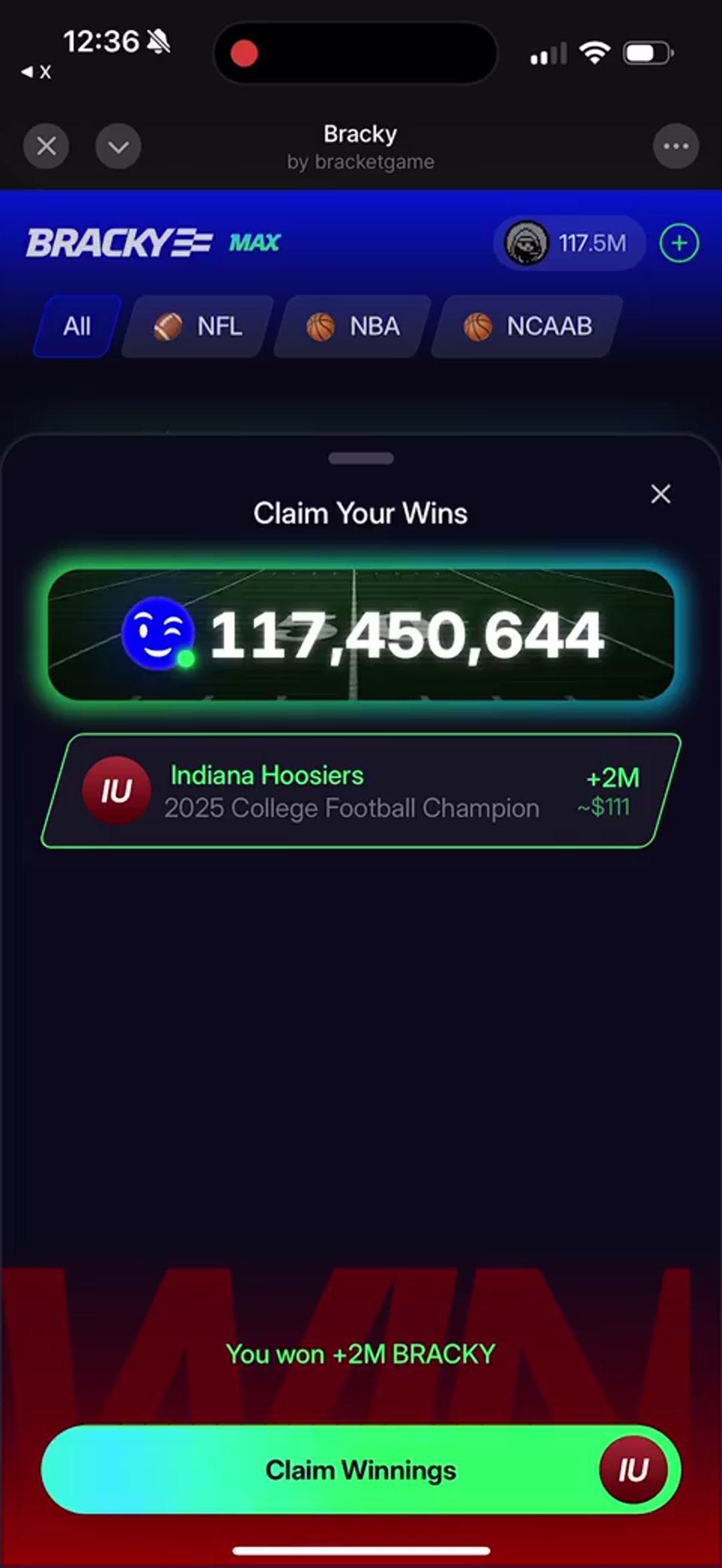 Winnings from parlayed airdrops and free rolls are now $121,000,000 $BRACKY