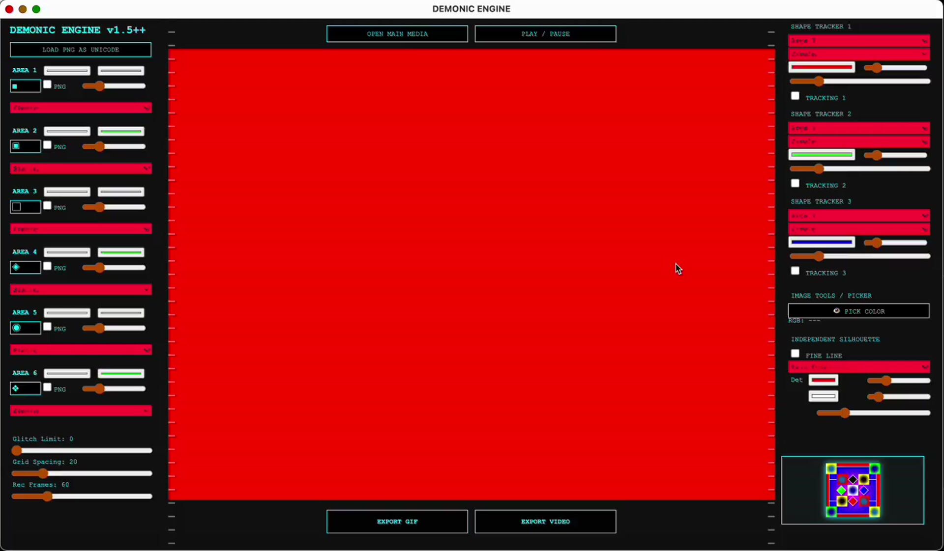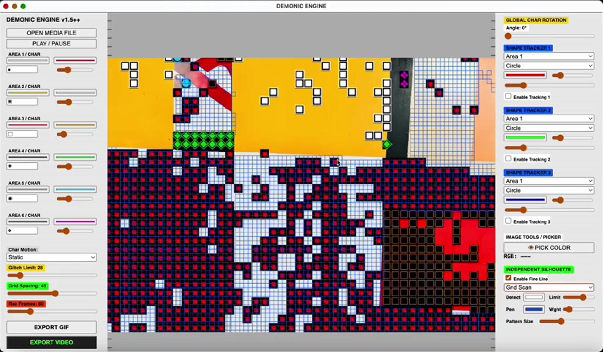 - Import a PNG file as unicode and map it to color zones with full motion control.