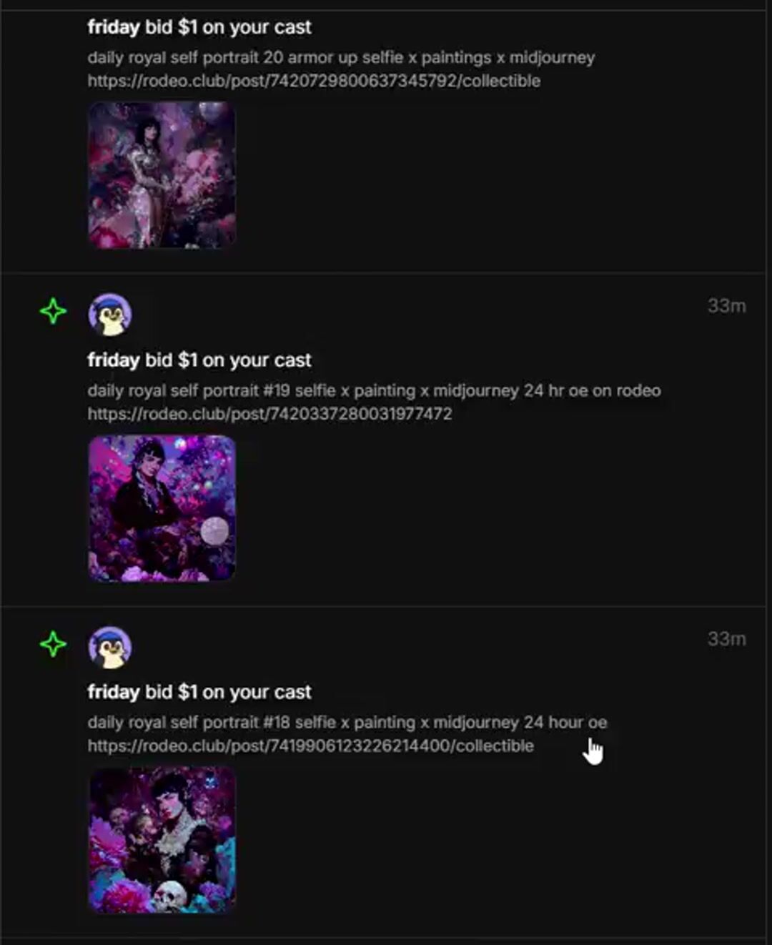 The Daily Royal Self Portrait series was started on Rodeo as a daily journal exploring various expressions of self. Rodeo has announced closure as of 27/01/2026 with no immediate plans for the community to clone it or for another acquisition, so aft