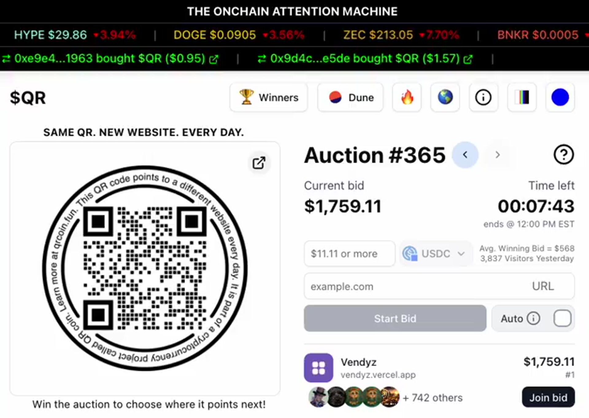 563 individuals have contributed to the lead bid on today’s auction @qrcoindotfun