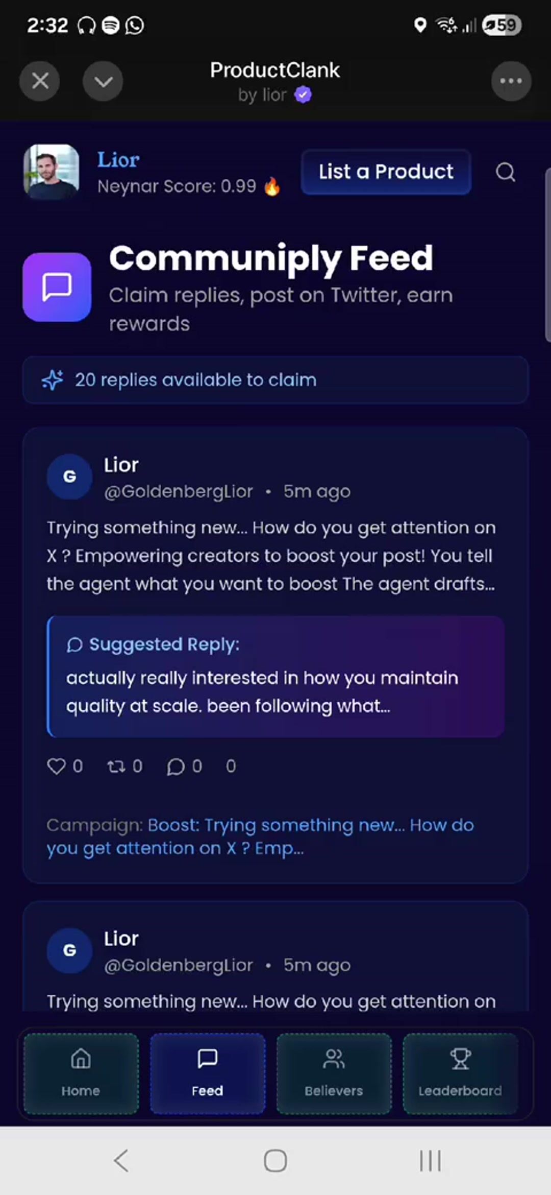 Every builder can use Communiply to boost their own posts on X and drive momentum by empowering their community.