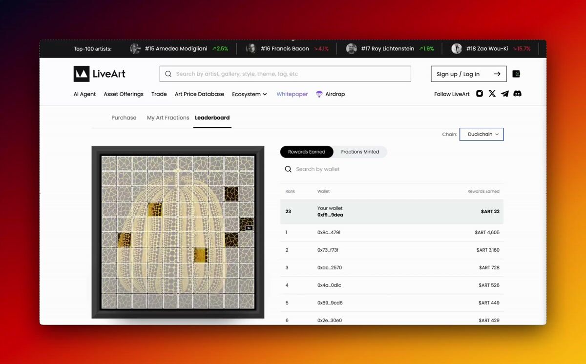 Her newest RWA is now live on LiveArt—backed by a physical Kusama.
