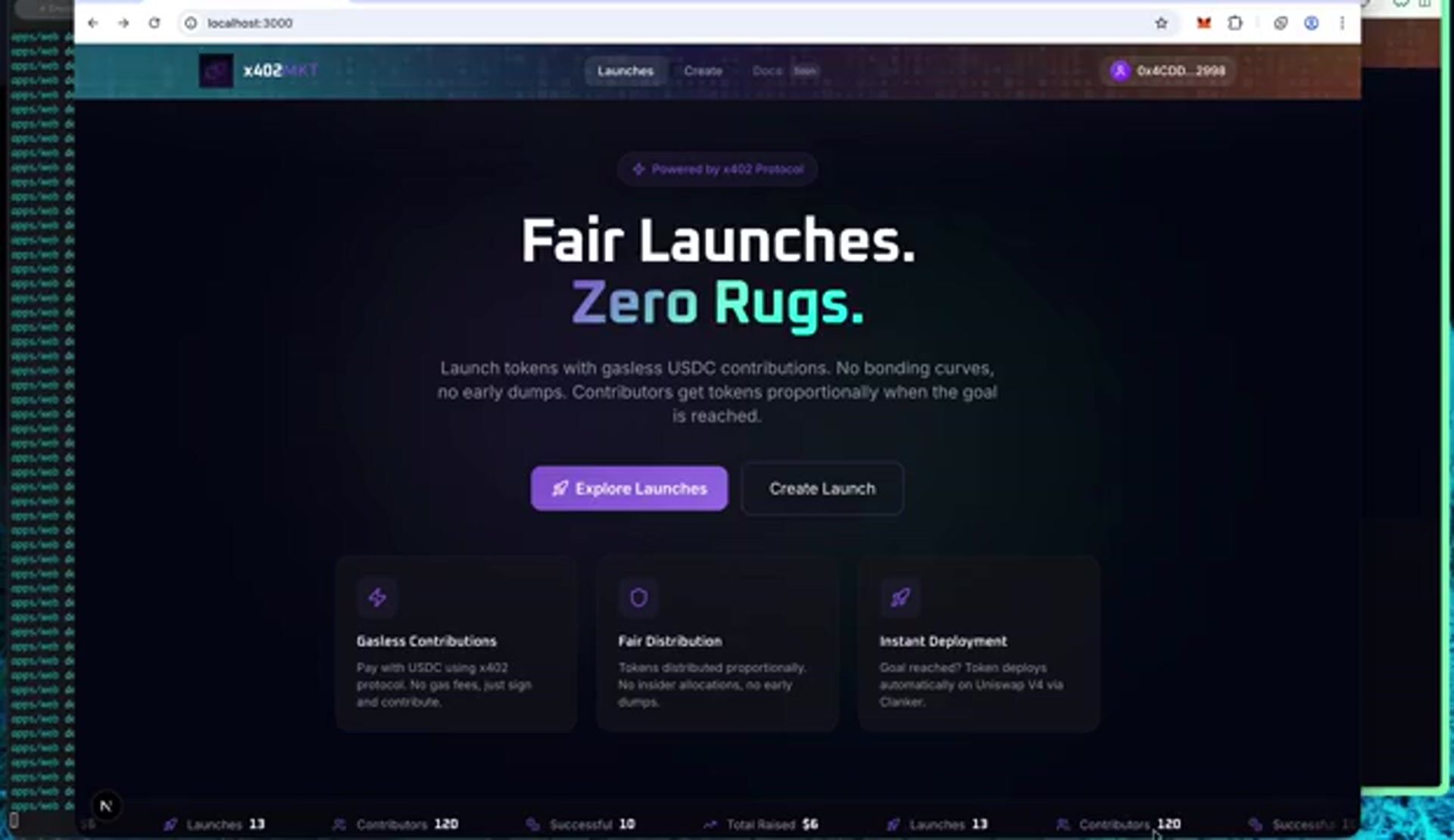 Here is a demo of the x402MKT token launchpad.