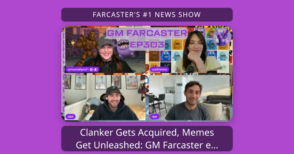 Description: Farcaster's most popular news show, live 3x a week with NounishProf and Adrienne. Interviews, updates, and culture from Farcaster and Base.