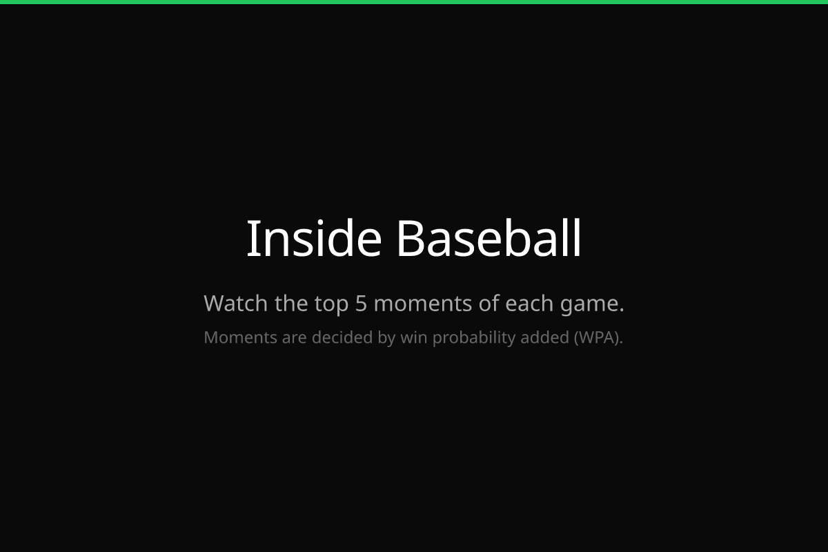 Description: Watch the top 5 moments from each MLB game, ranked by win probability added (WPA). New games every morning.