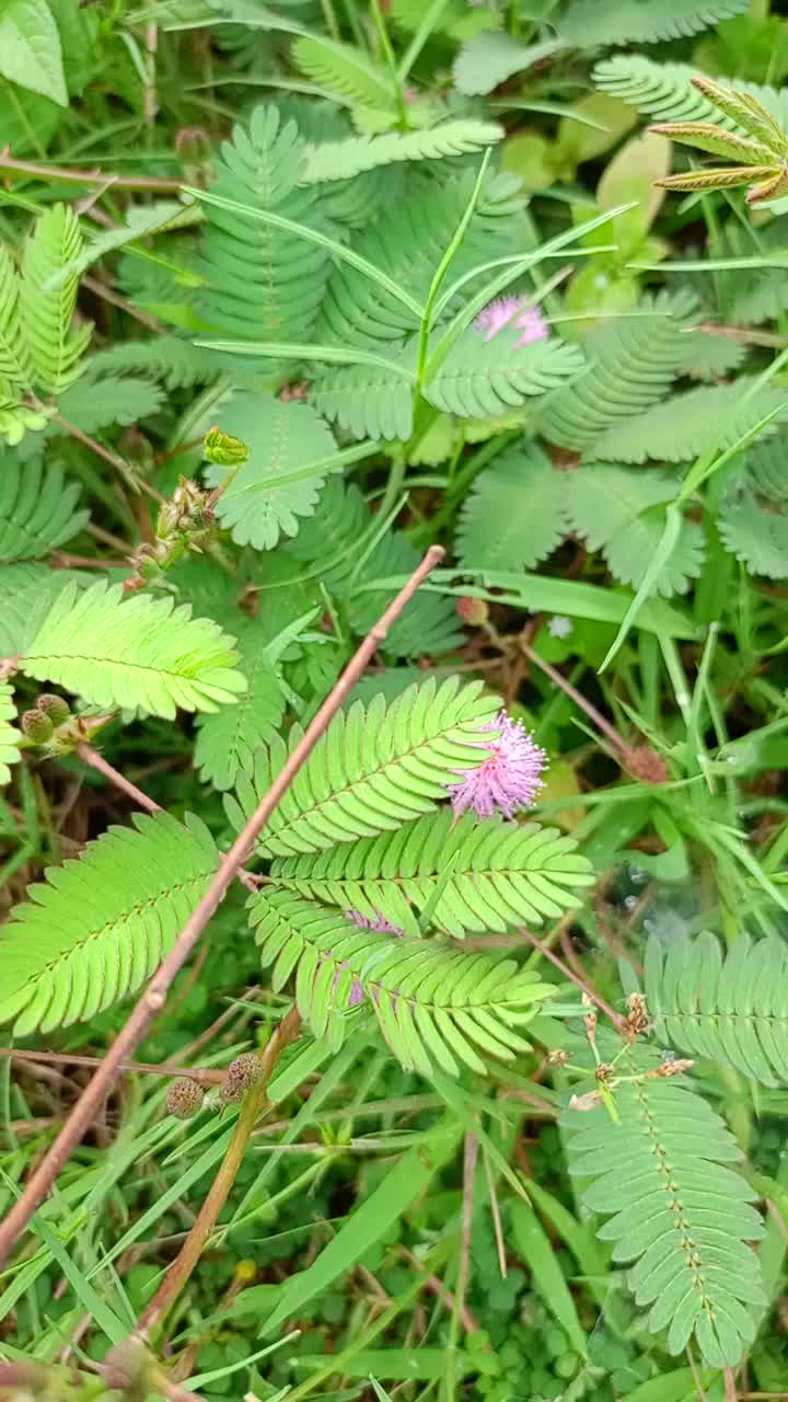 This is the Mimosa pudica L plant. This plant has a strange characteristic: whenever anything touches its leaves, they immediately fold up.