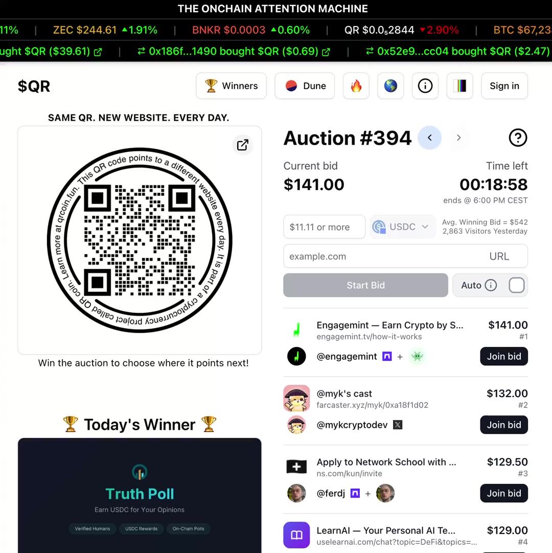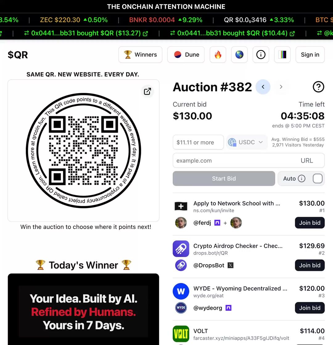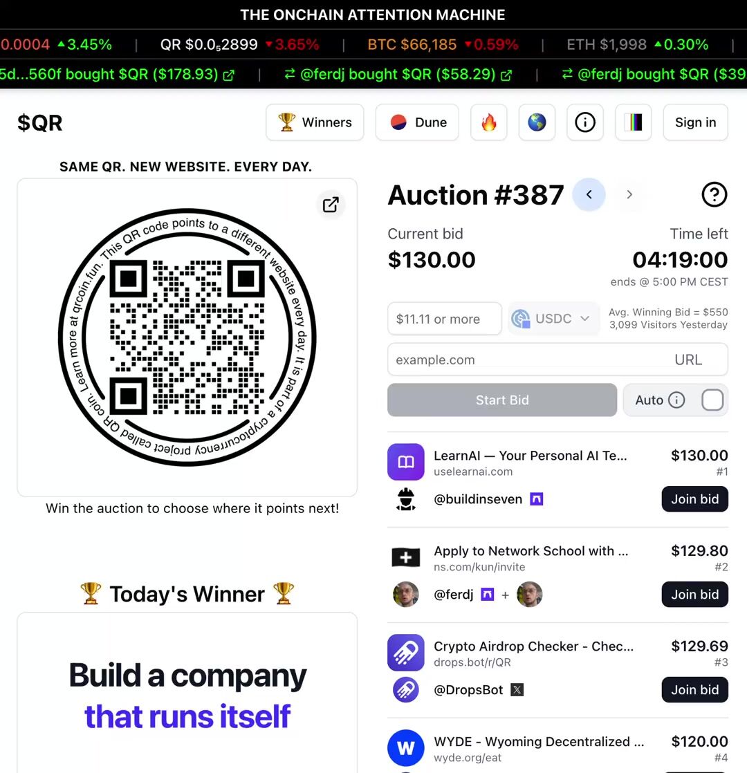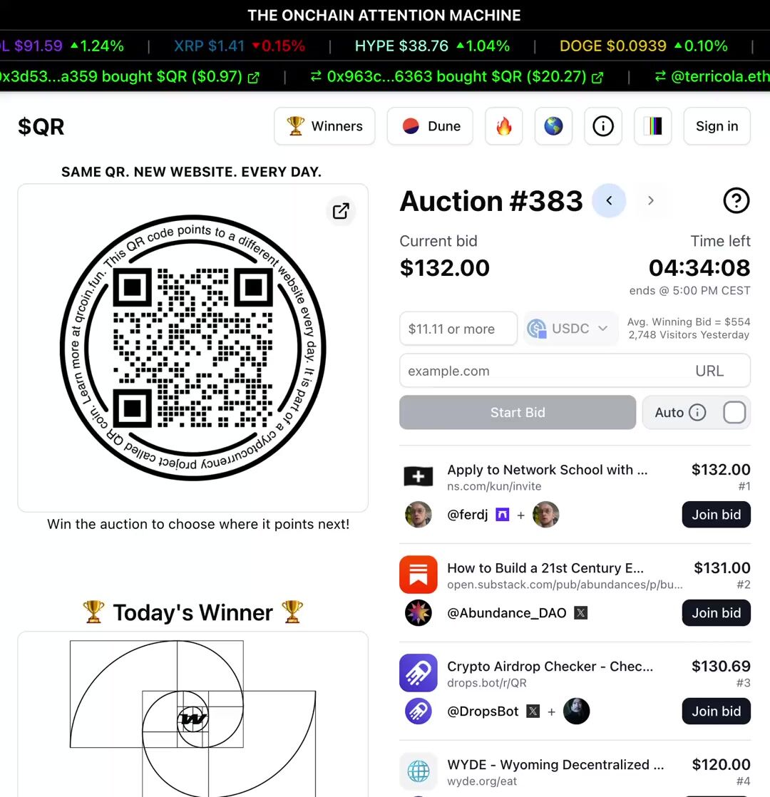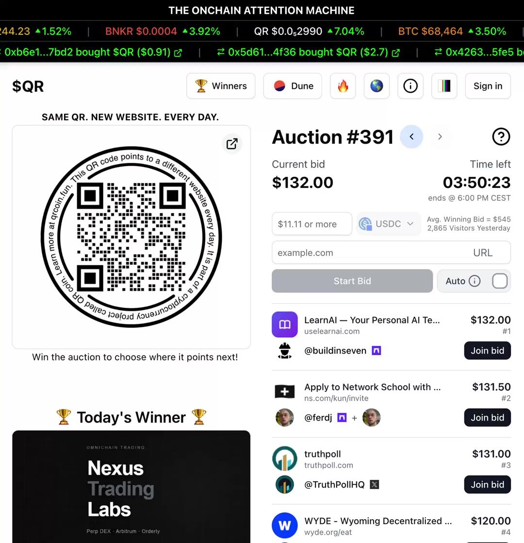 QR is a no-brainer for someone like me who doesn’t have much of a budget for marketing. Just by bidding, I gain free exposure. When I win, even better as I’m flooded with eyeballs. I’ll keep bidding for this reason - https://t.co/hf0VkSeP1n