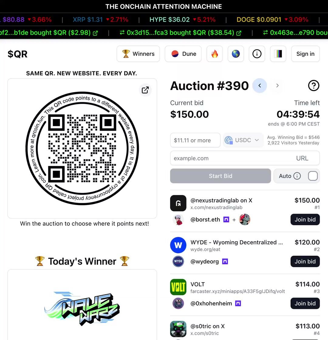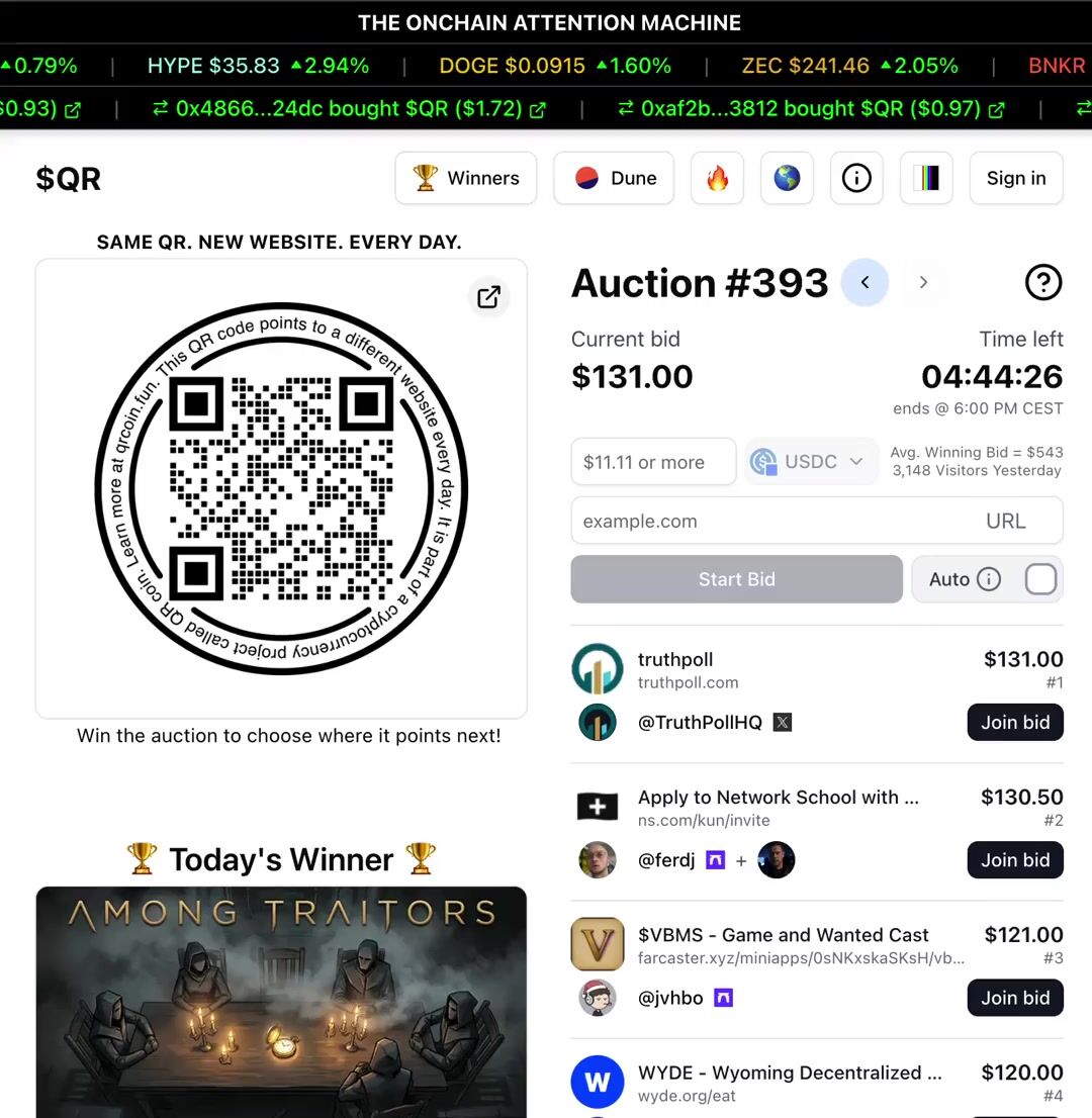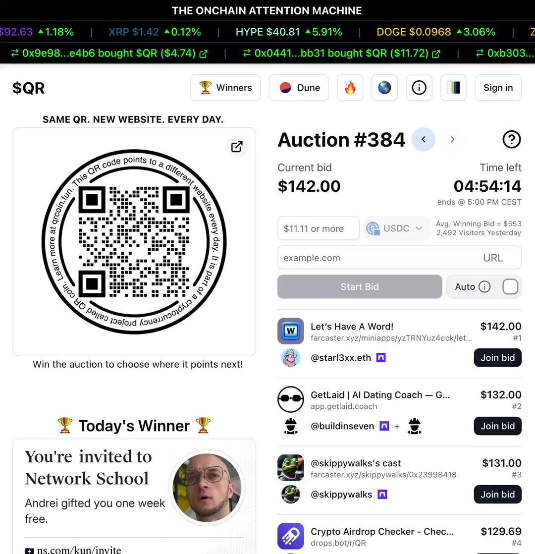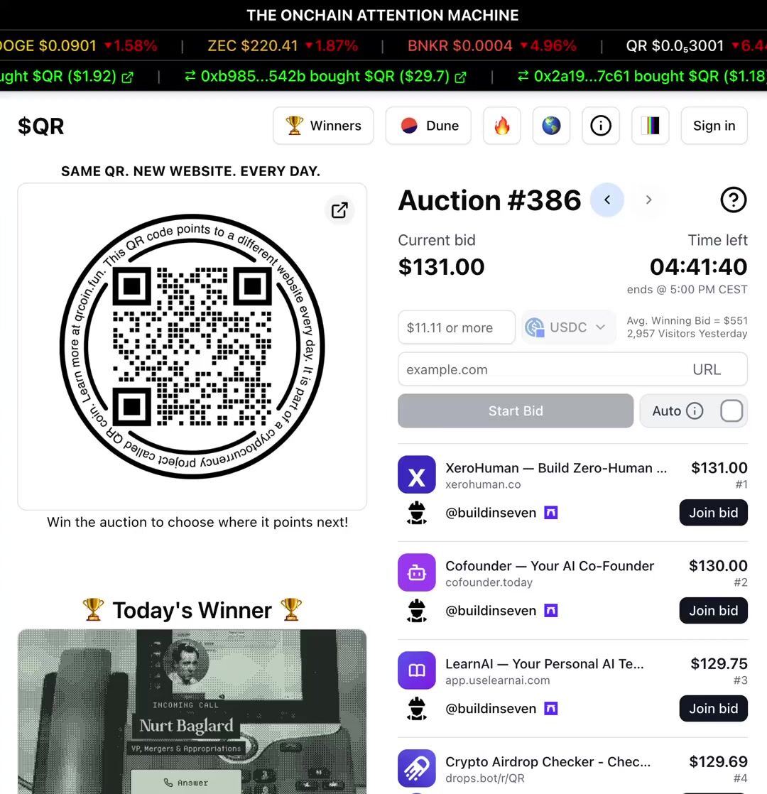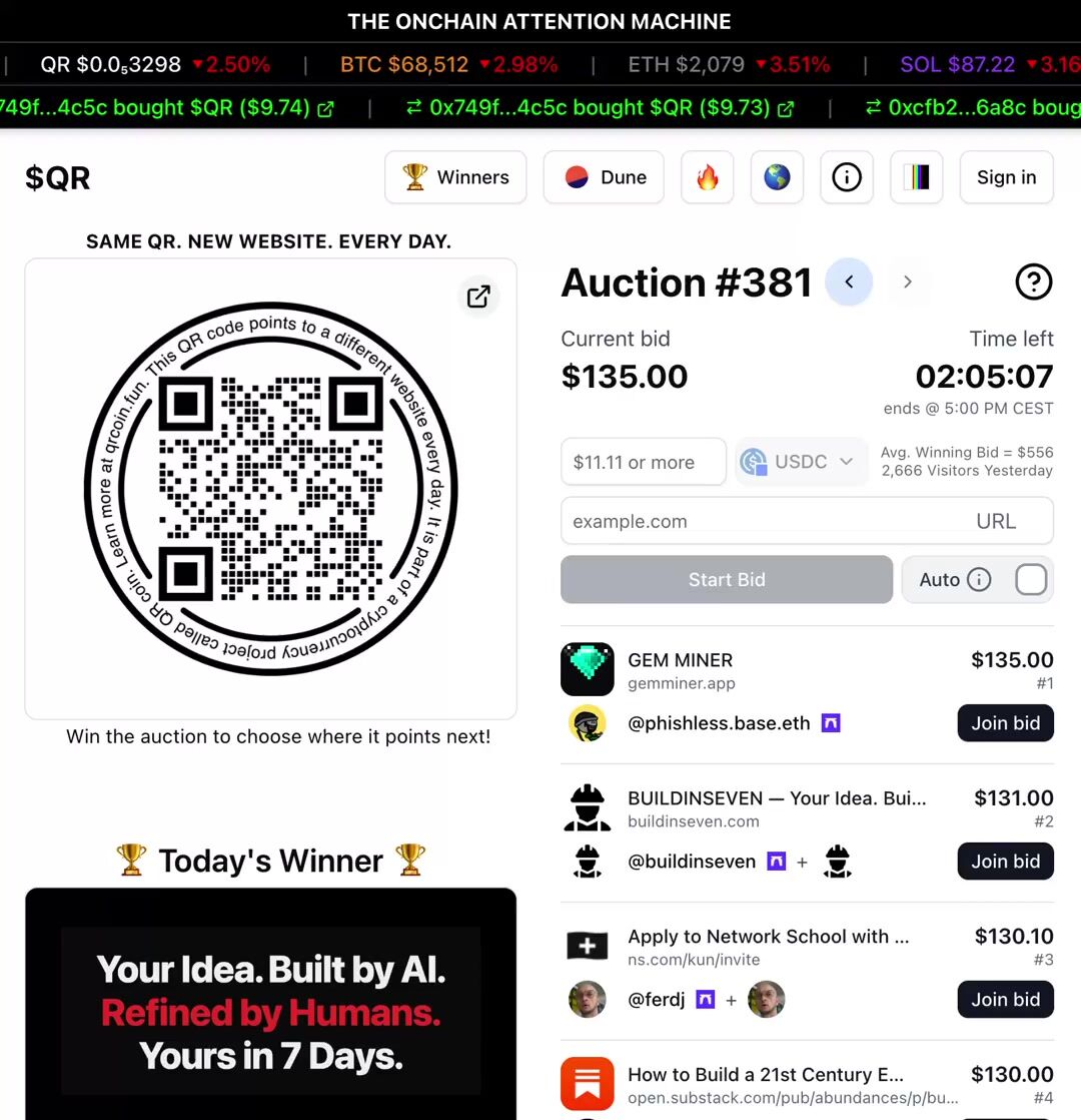 QR is a no-brainer for someone like me who doesn’t have much of a budget for marketing. Just by bidding, I gain free exposure. When I win, even better as I’m flooded with eyeballs. I’ll keep bidding for this reason - https://t.co/hf0VkSeP1n