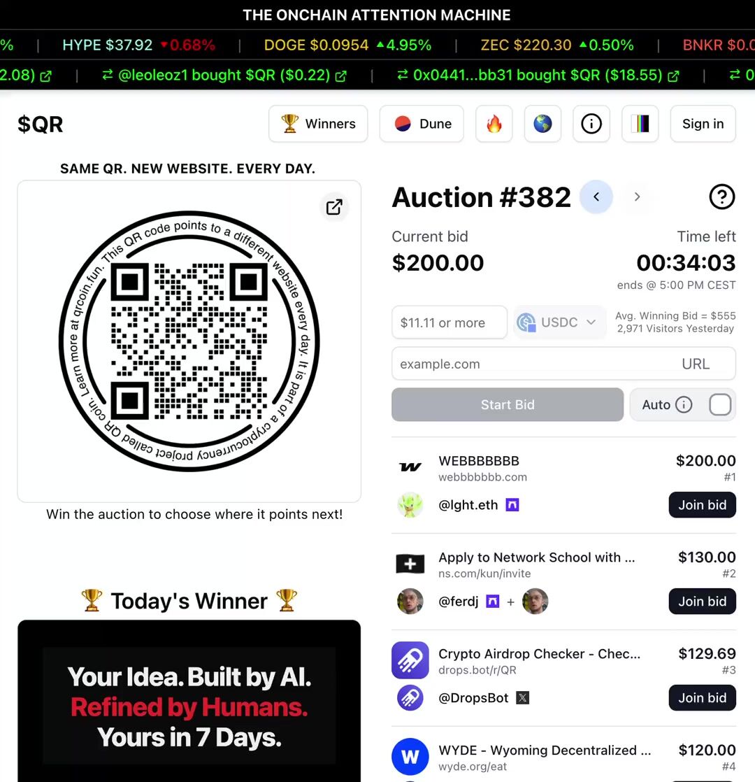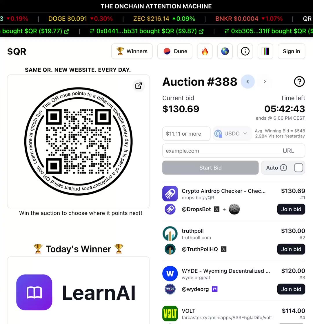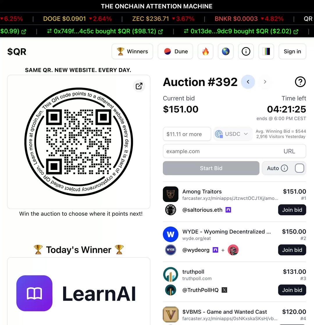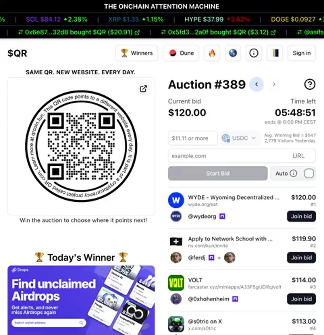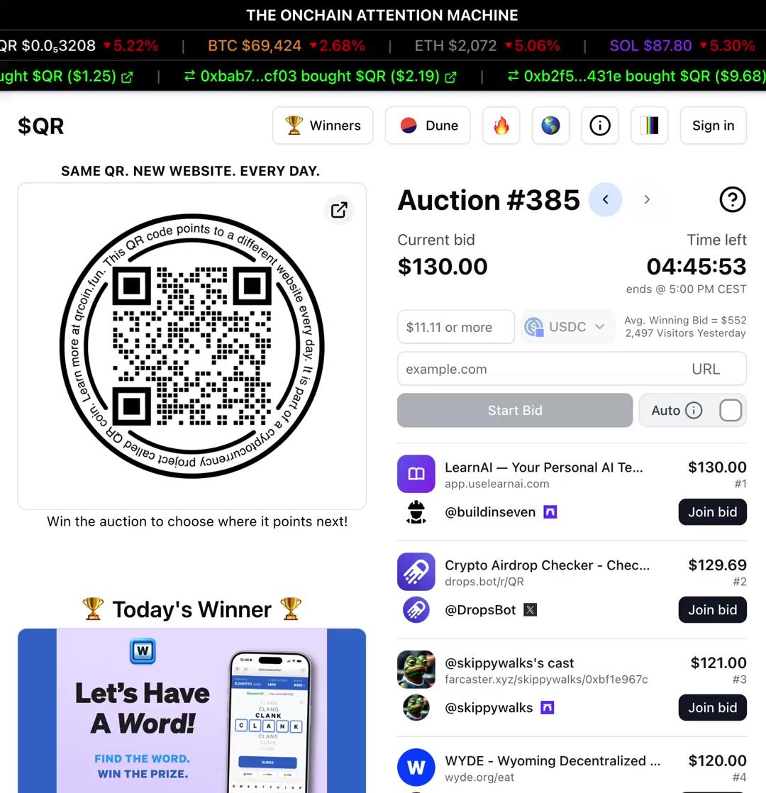 QR is a no-brainer for someone like me who doesn’t have much of a budget for marketing. Just by bidding, I gain free exposure. When I win, even better as I’m flooded with eyeballs. I’ll keep bidding for this reason - https://t.co/hf0VkSeP1n