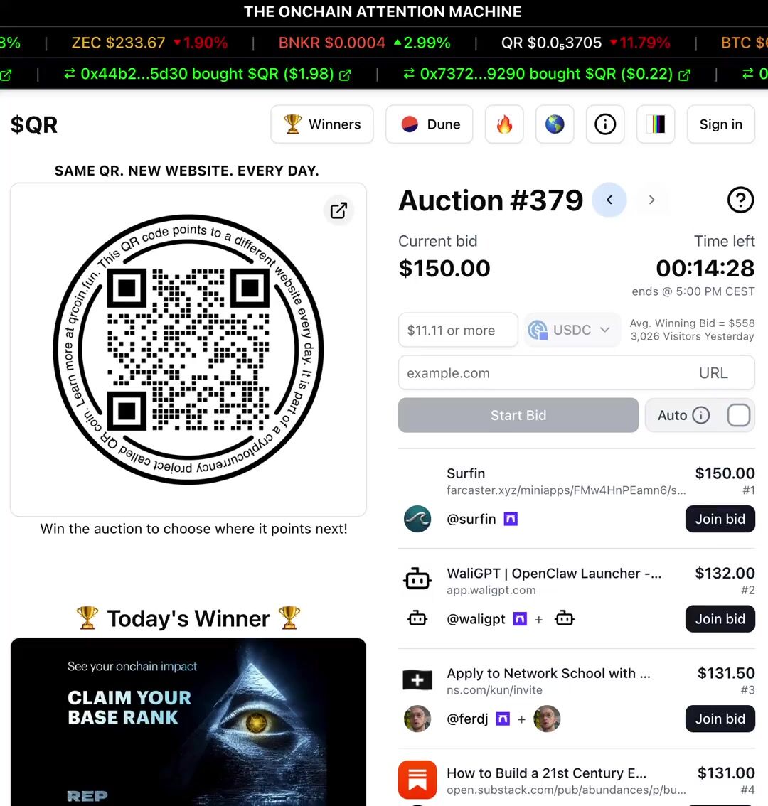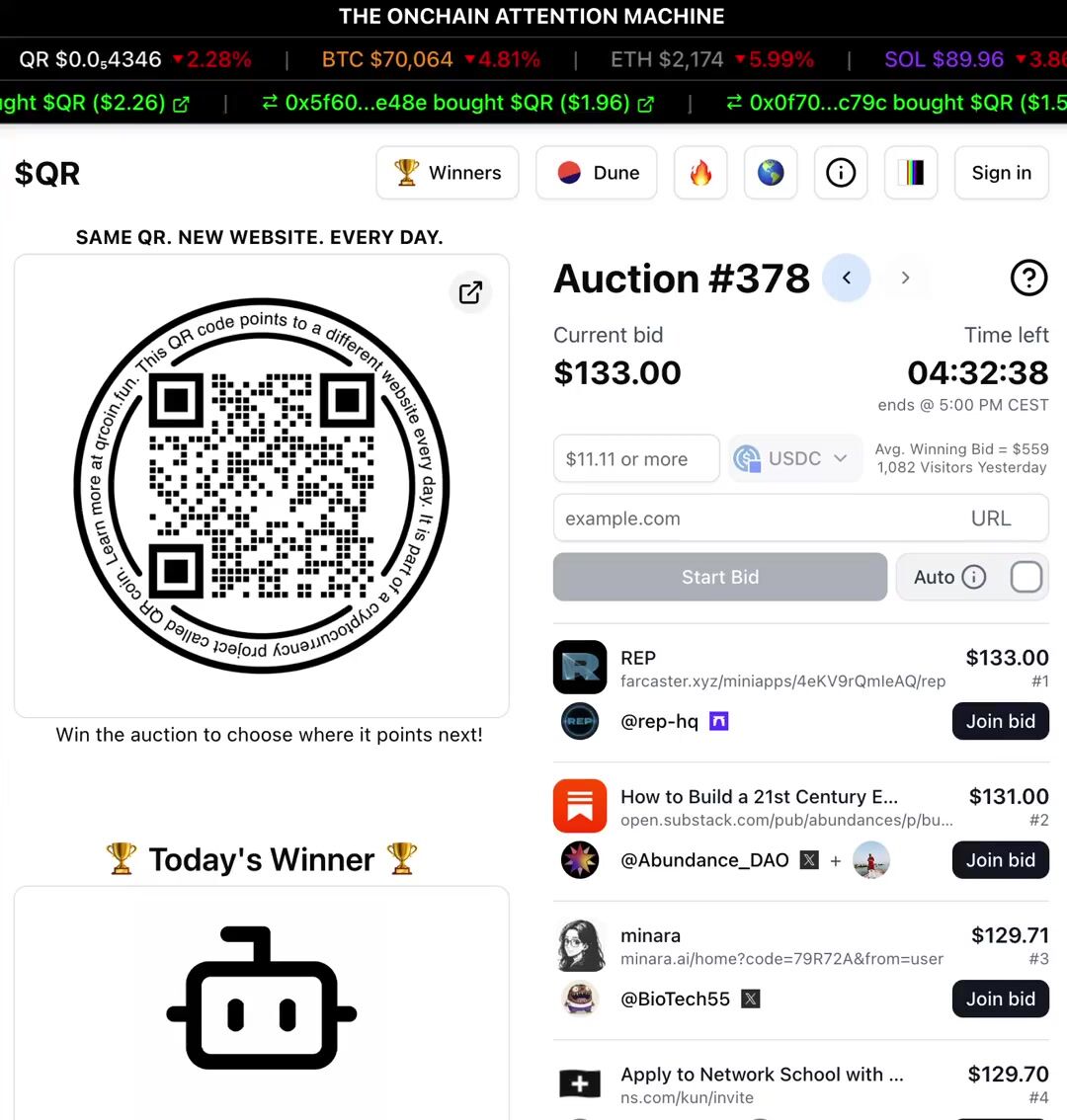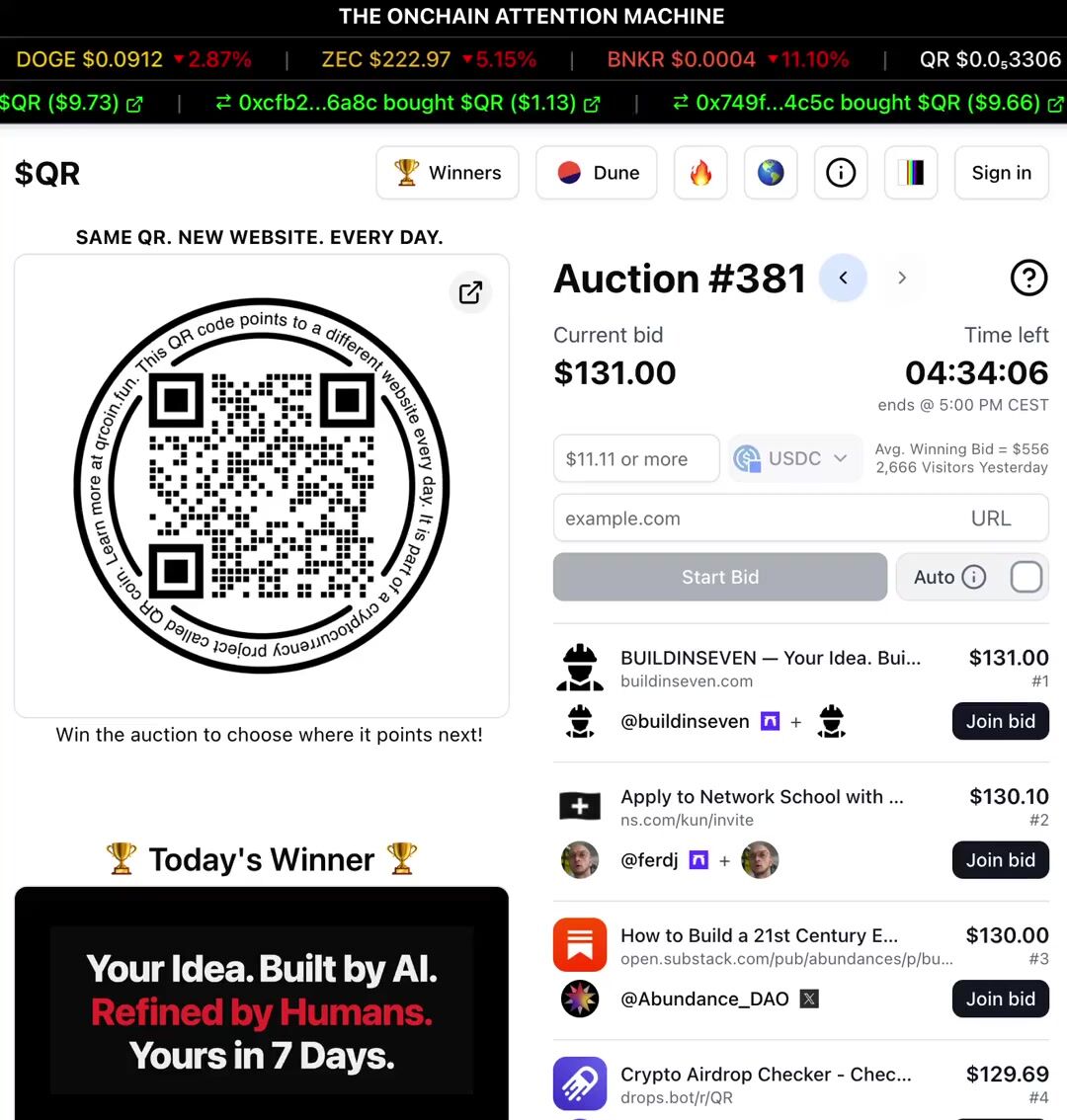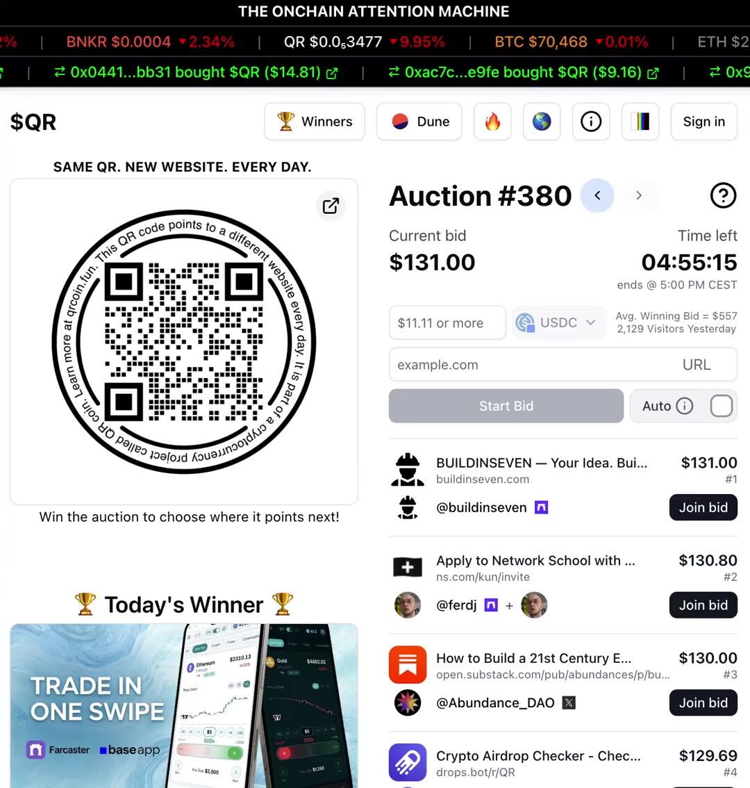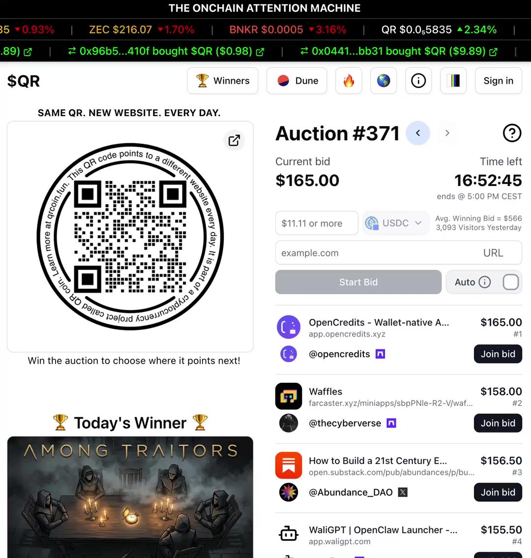 QR is a no-brainer for someone like me who doesn’t have much of a budget for marketing. Just by bidding, I gain free exposure. When I win, even better as I’m flooded with eyeballs. I’ll keep bidding for this reason - https://t.co/hf0VkSeP1n