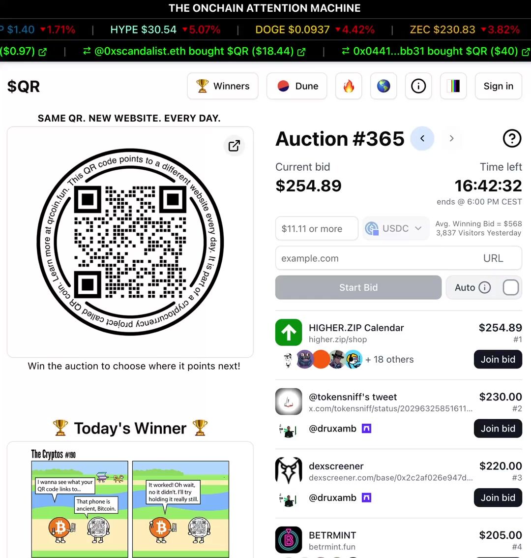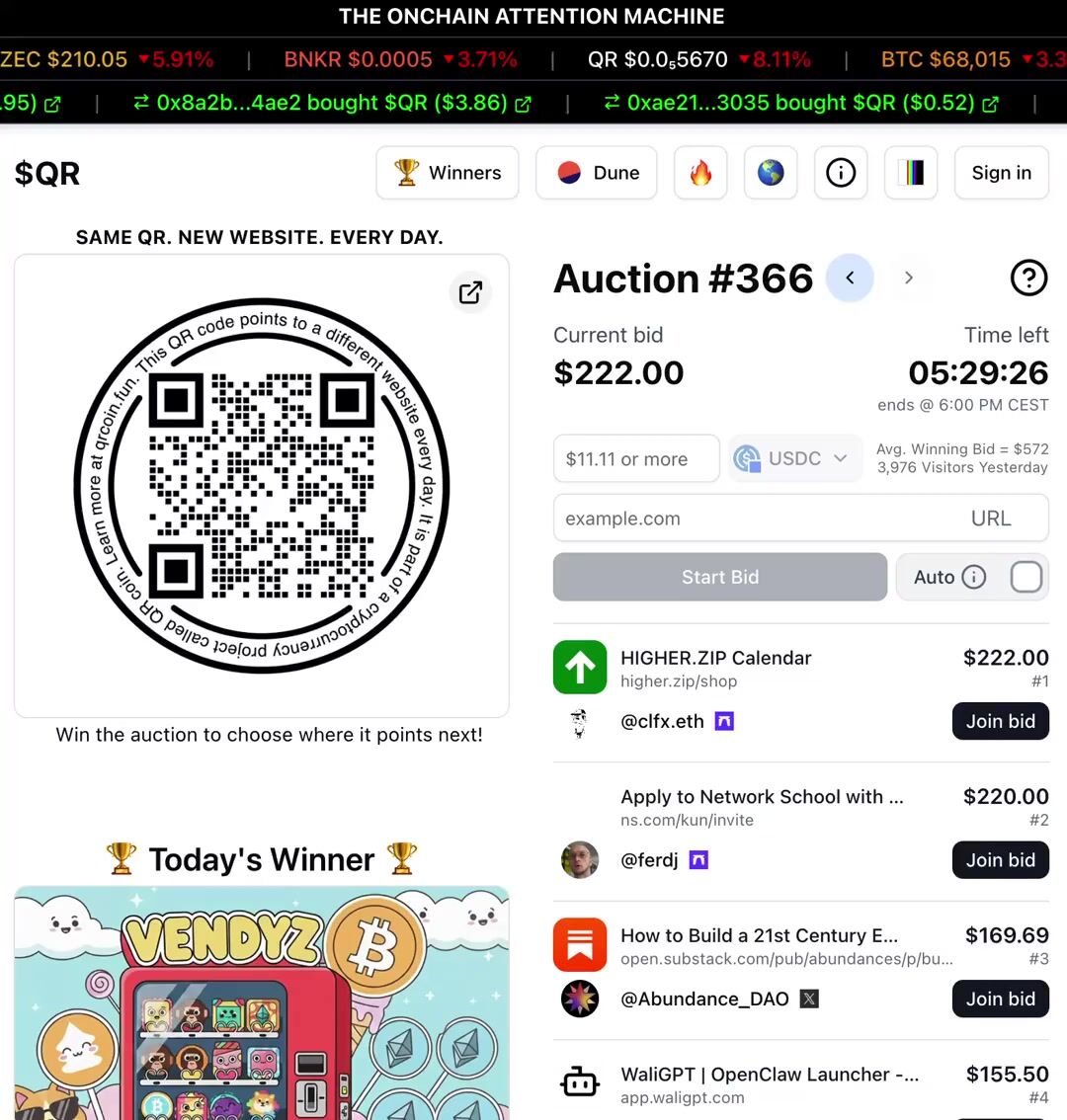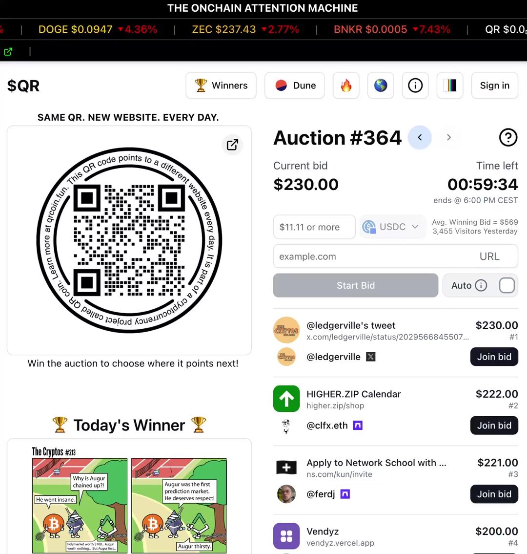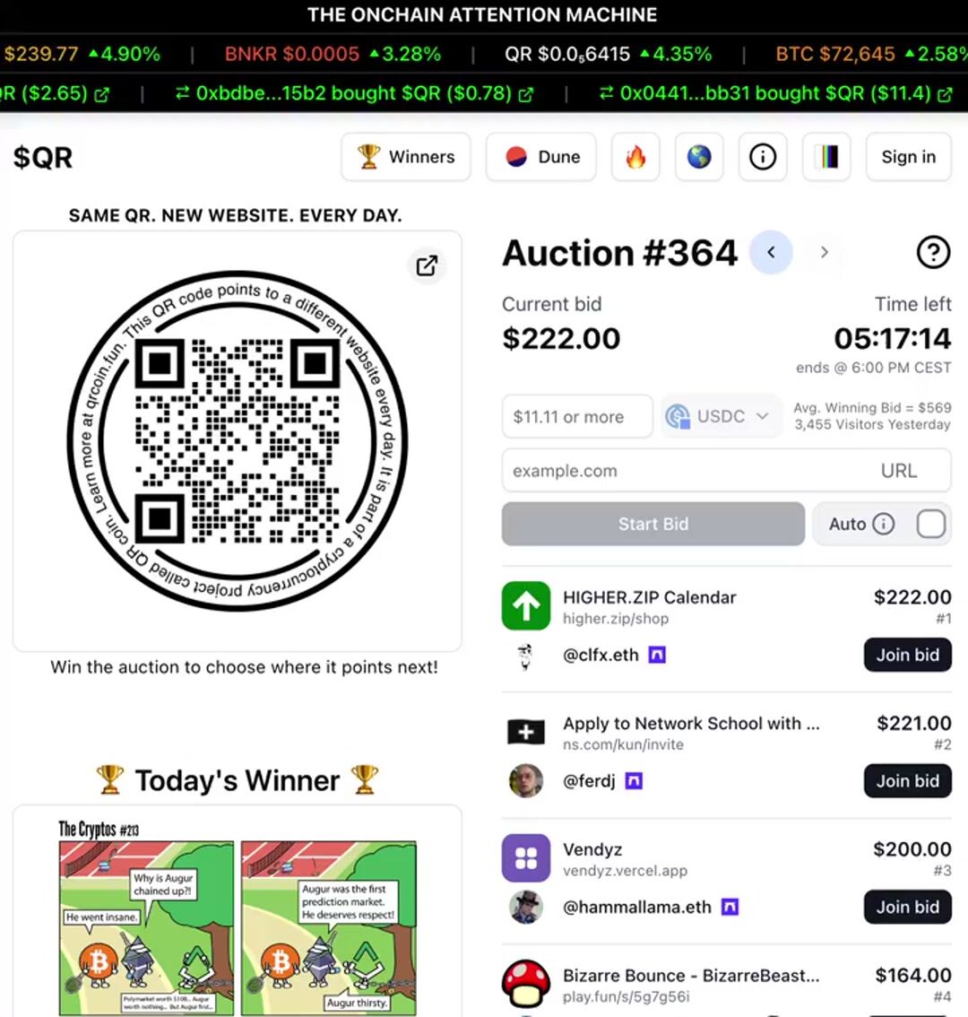 @clfx.eth leads the auction right now with a $222 bid trying to point the $QR higher.zip