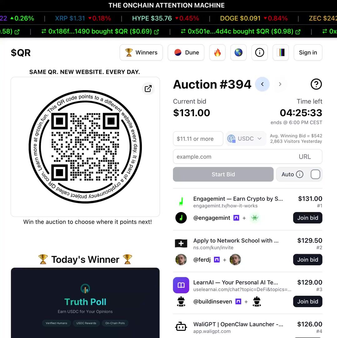@truthpoll still leading with a $131 bid trying to point the $QR to their site.