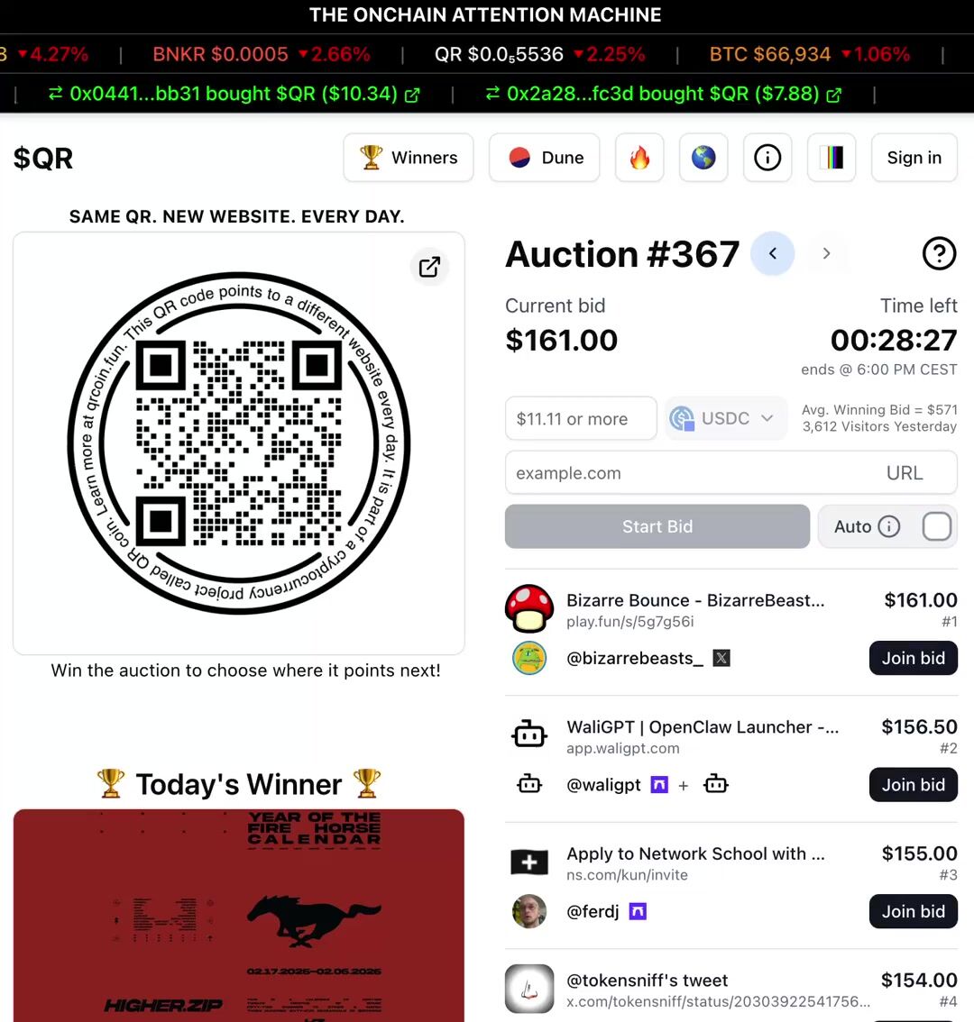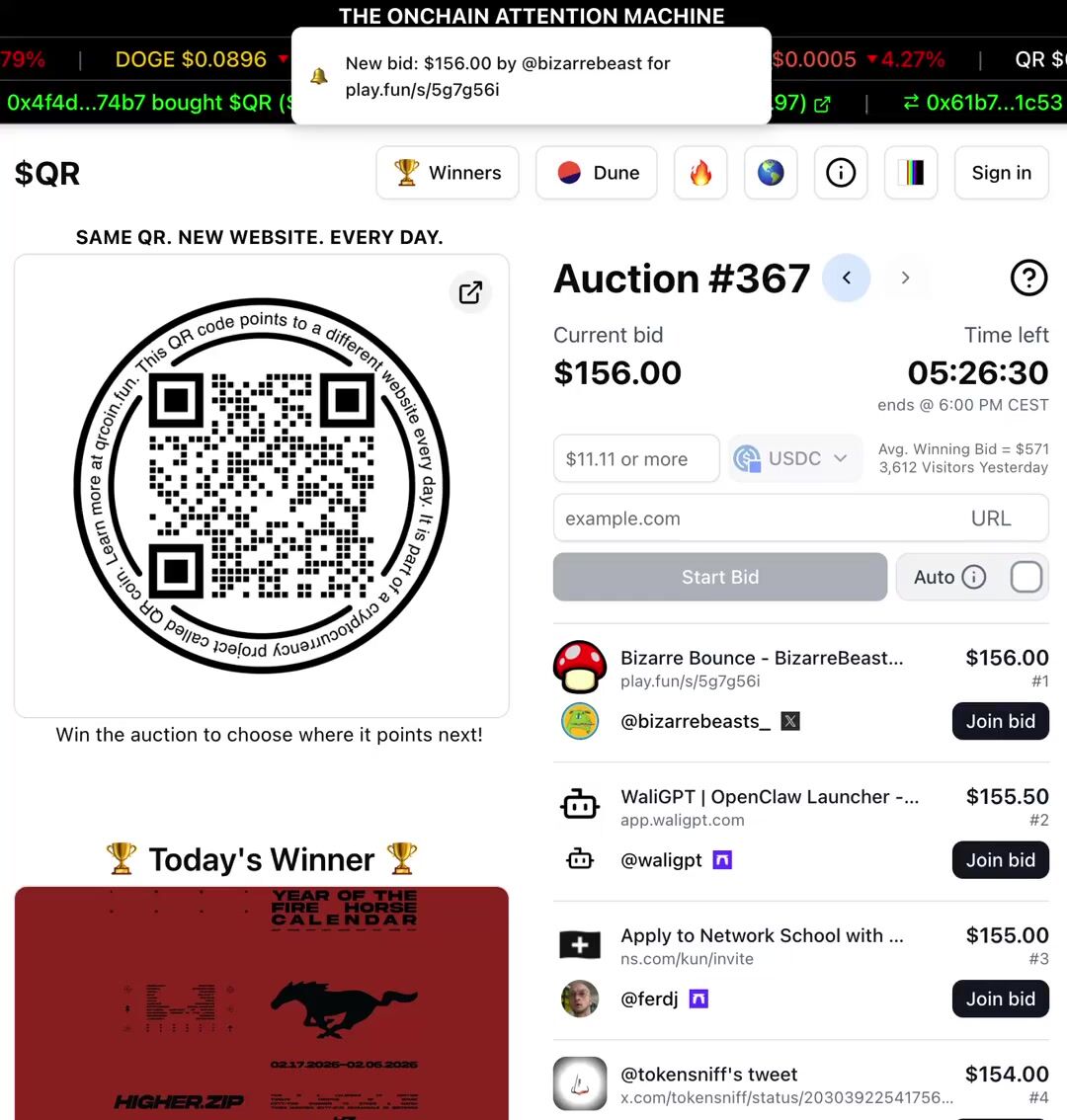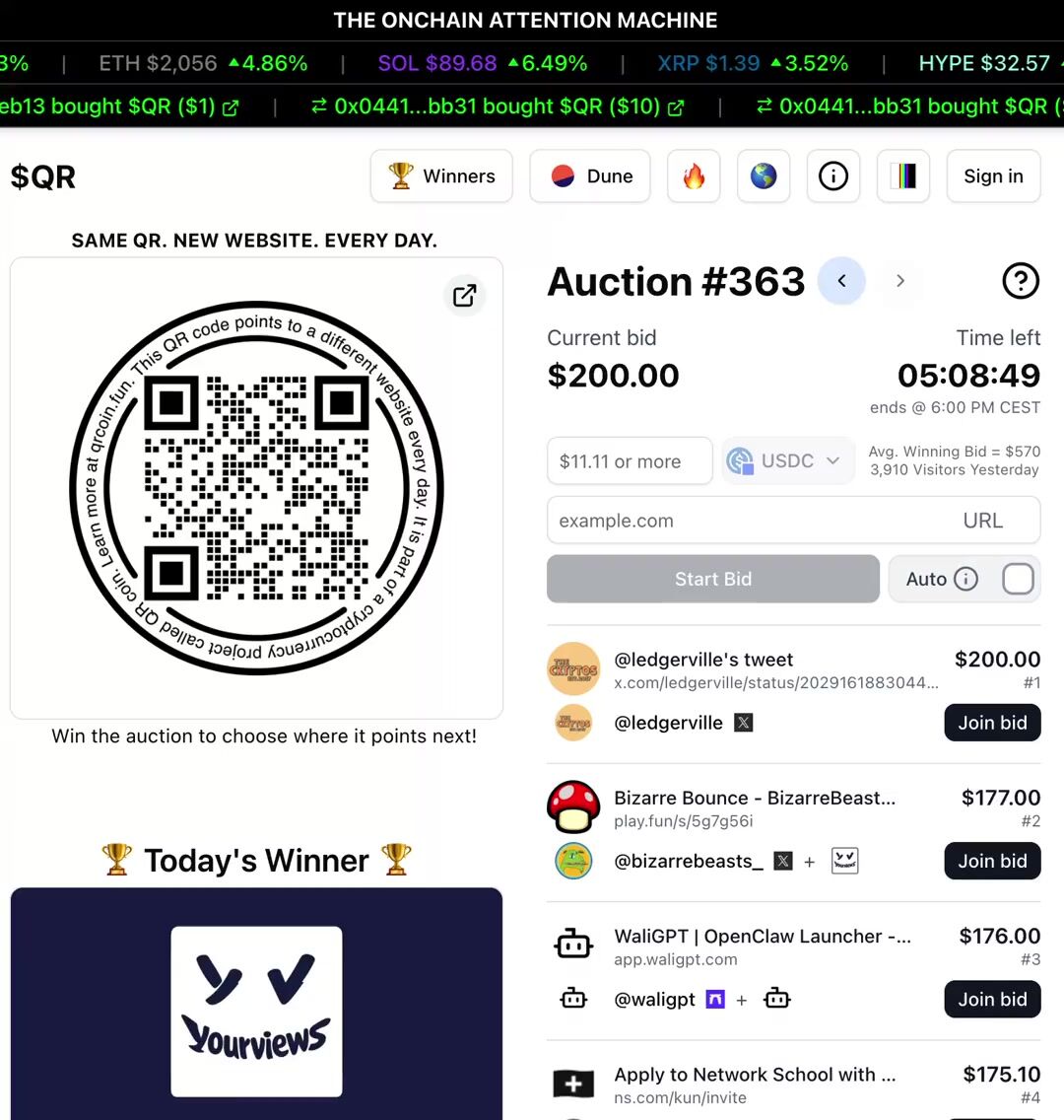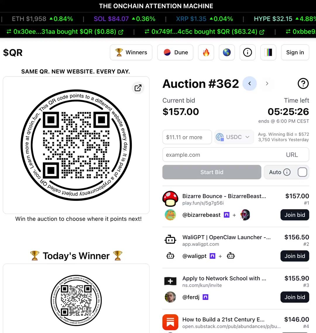 @wydeorg leads the auction today with a $120 bid trying to point the $QR to their website.