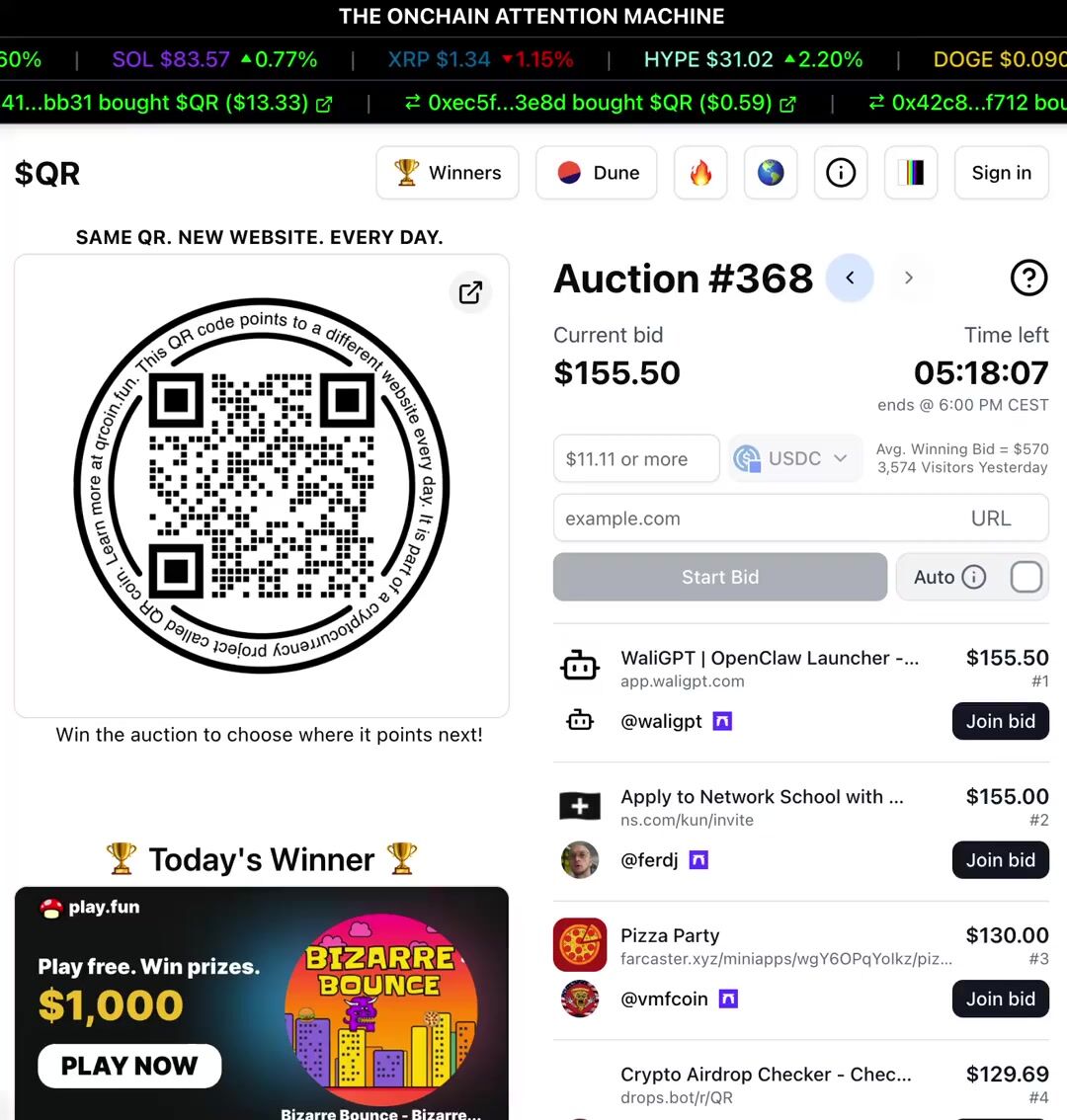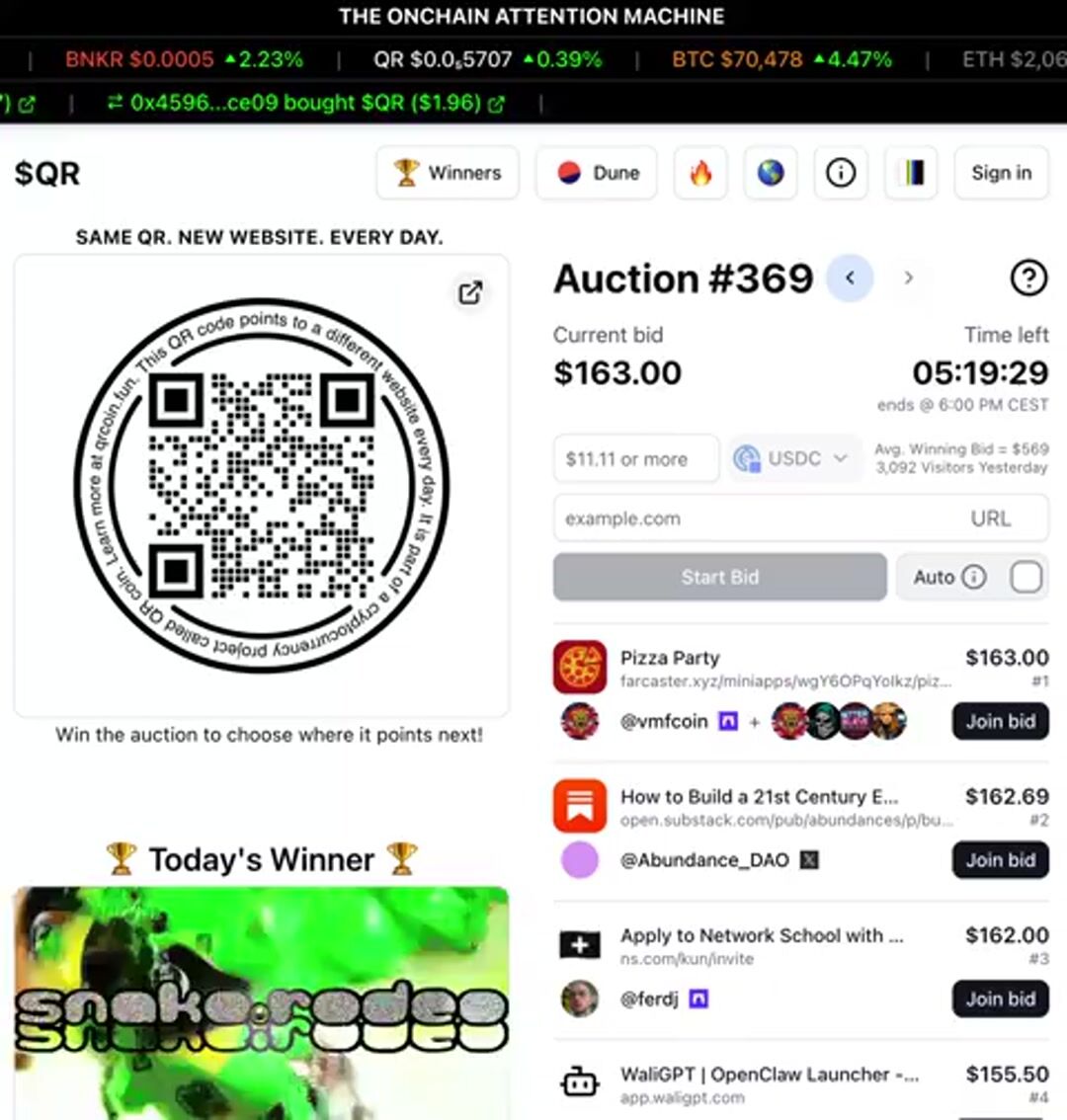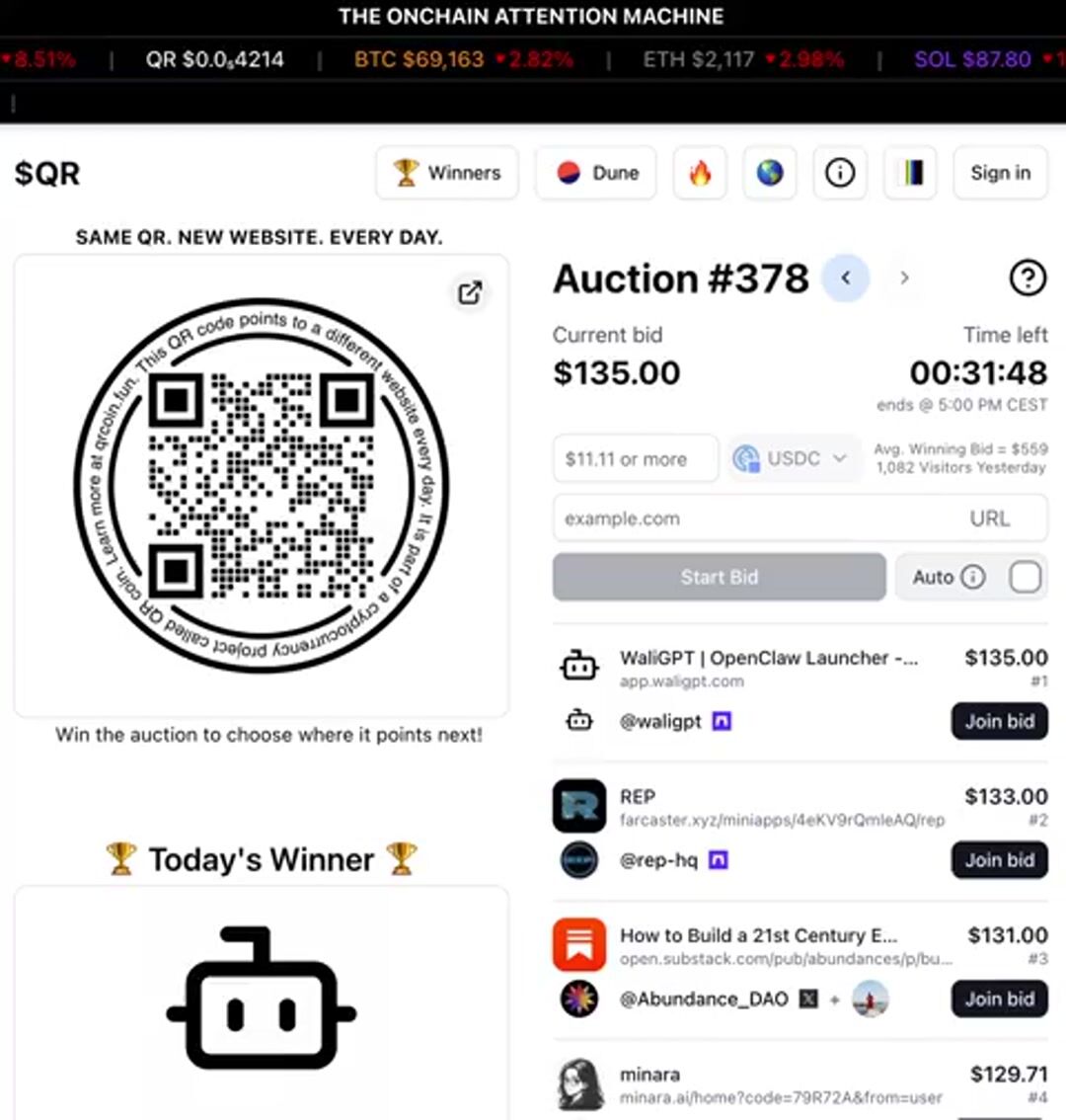 @wydeorg leads the auction today with a $120 bid trying to point the $QR to their website.