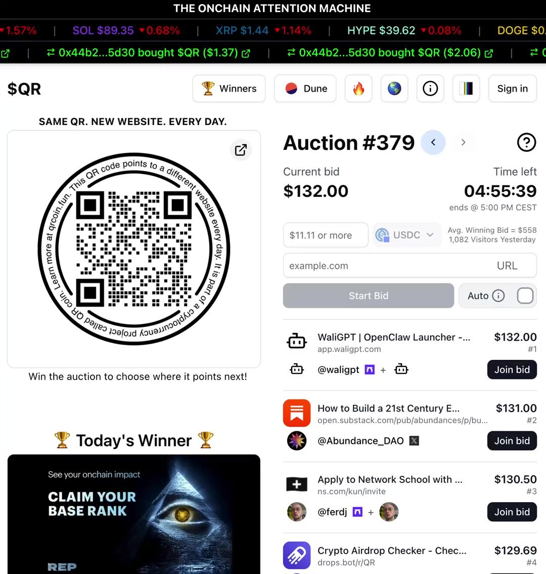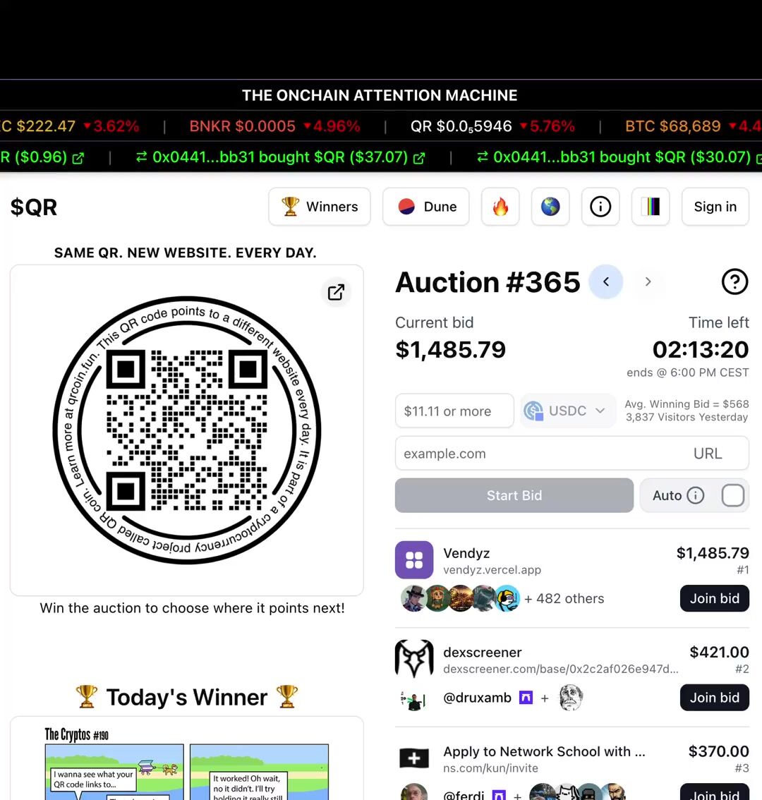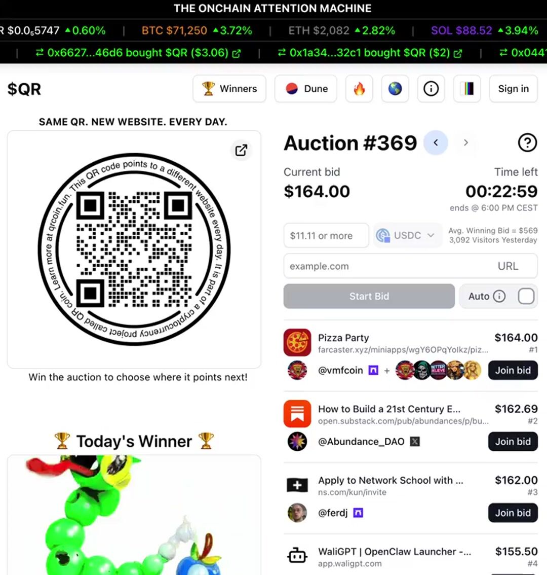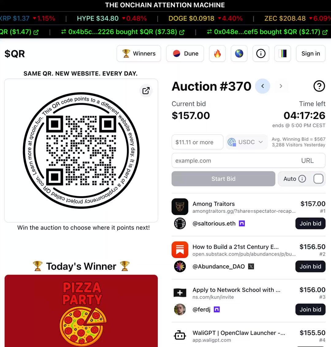 @wydeorg leads the auction today with a $120 bid trying to point the $QR to their website.