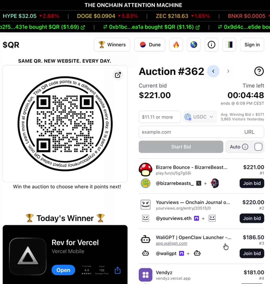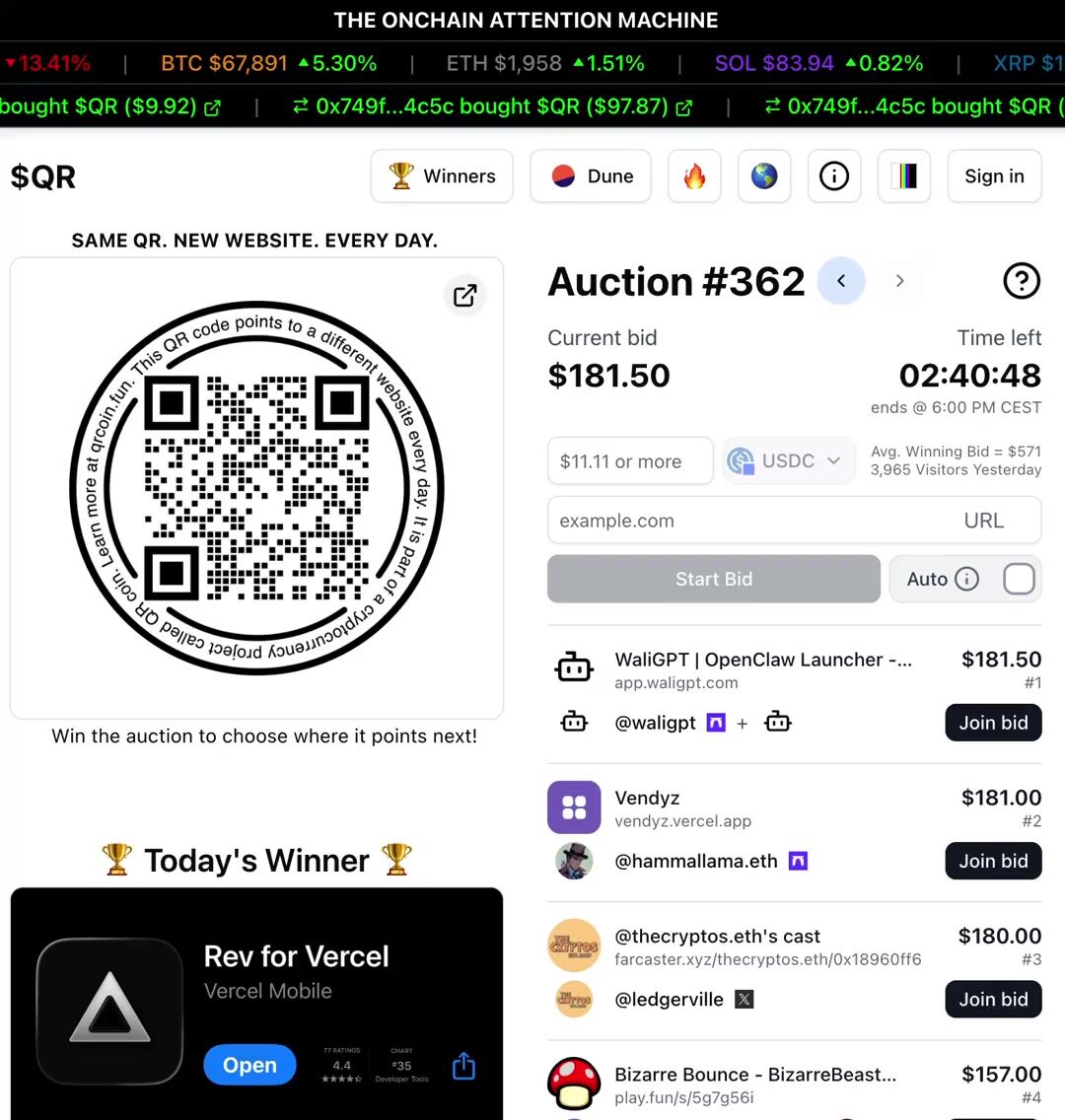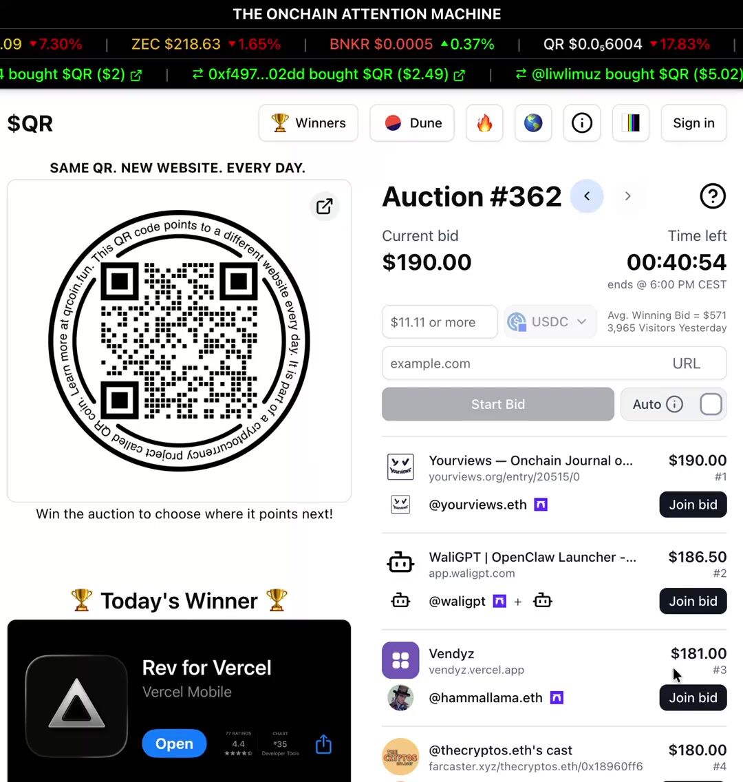 @chrisdom now leading with a $161.11 bid trying to point the $QR to rev for vercel app.