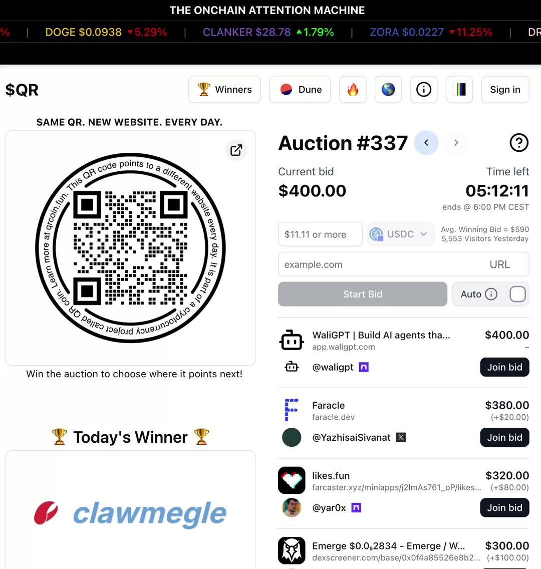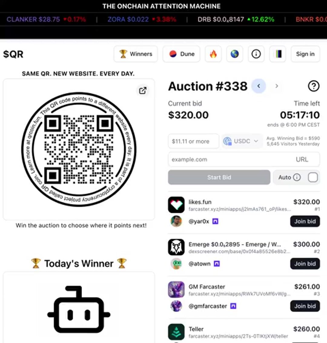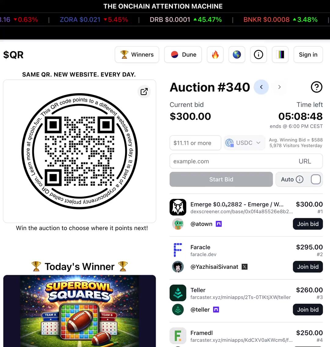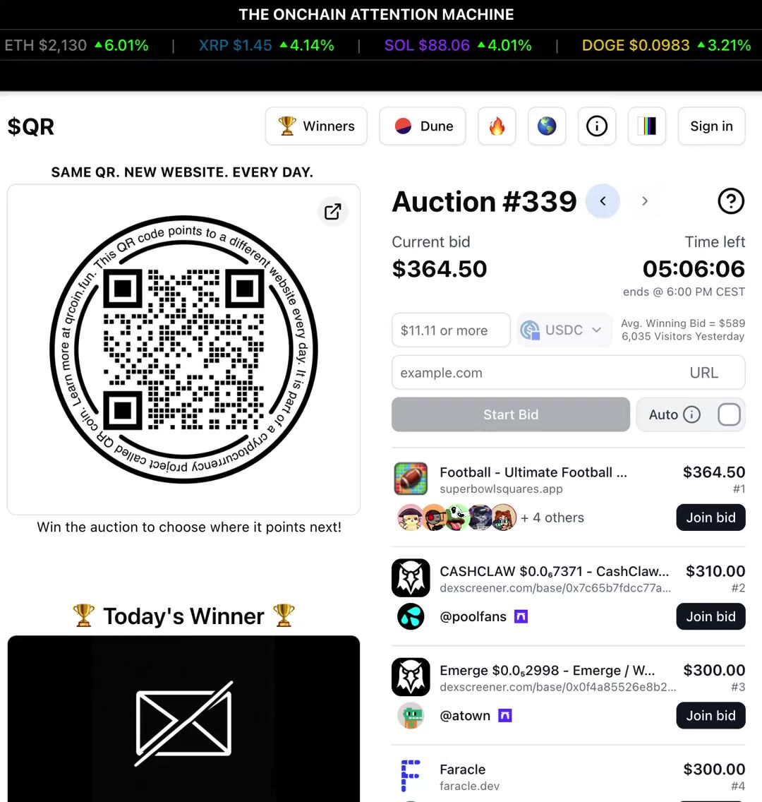 @atown & others also bidding in this historical auction, historical because the $QR is one year old today, still day one.