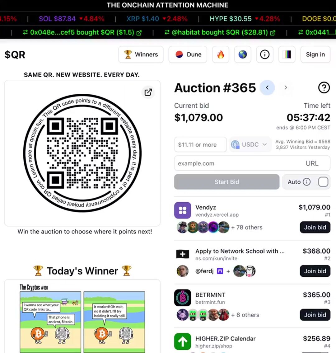 @hammallama.eth & 78 others lead with a $1079 bid in this special auction trying to point the $QR to vendyz.vercel.app