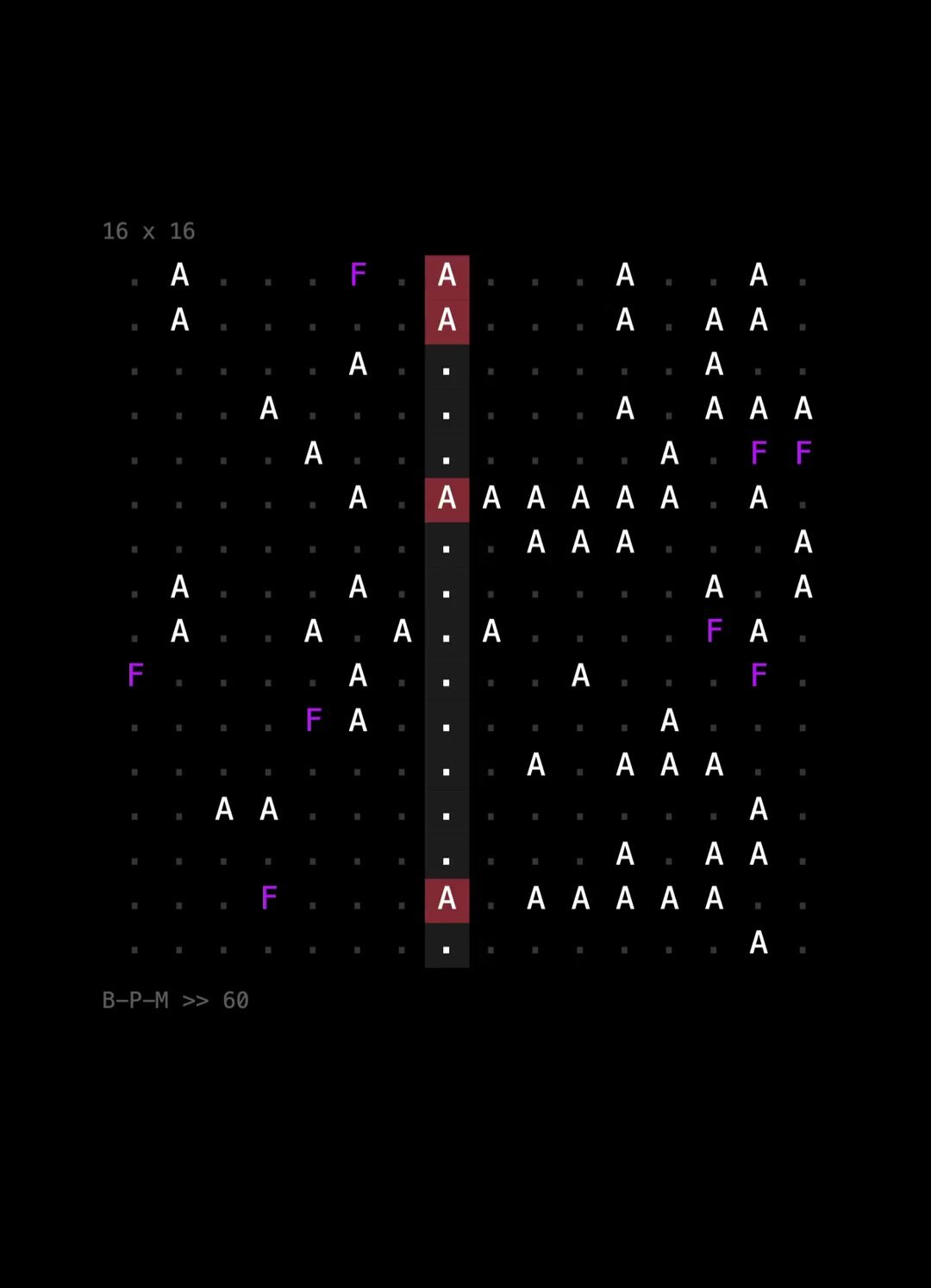 a minimalist #ASCII webaudio sequencer, where the playhead drifts along with the tempo