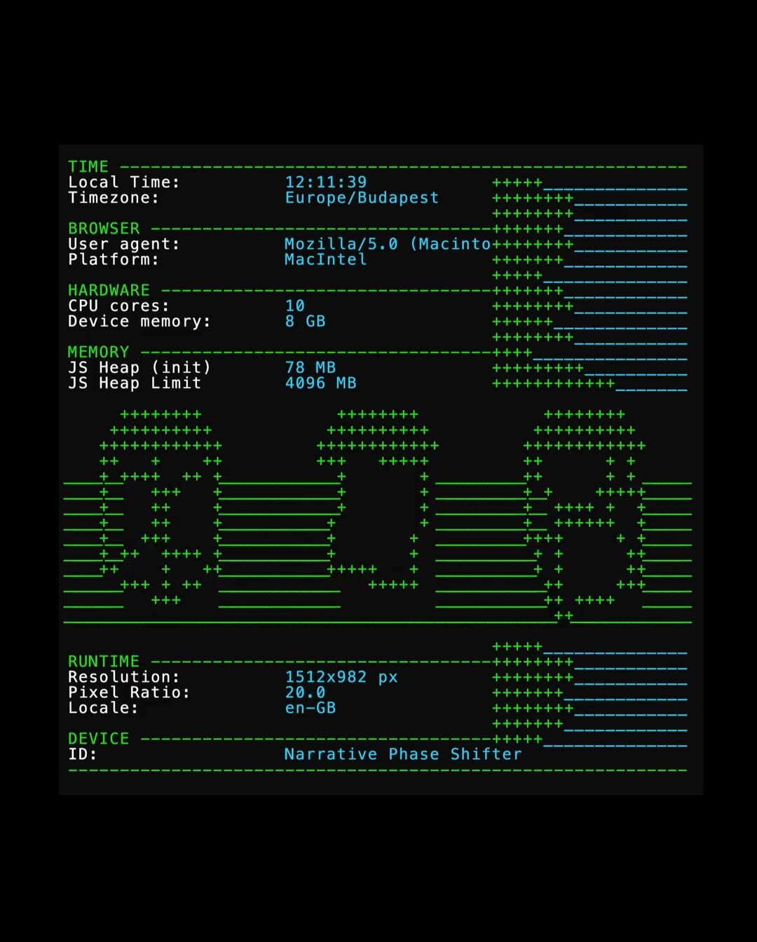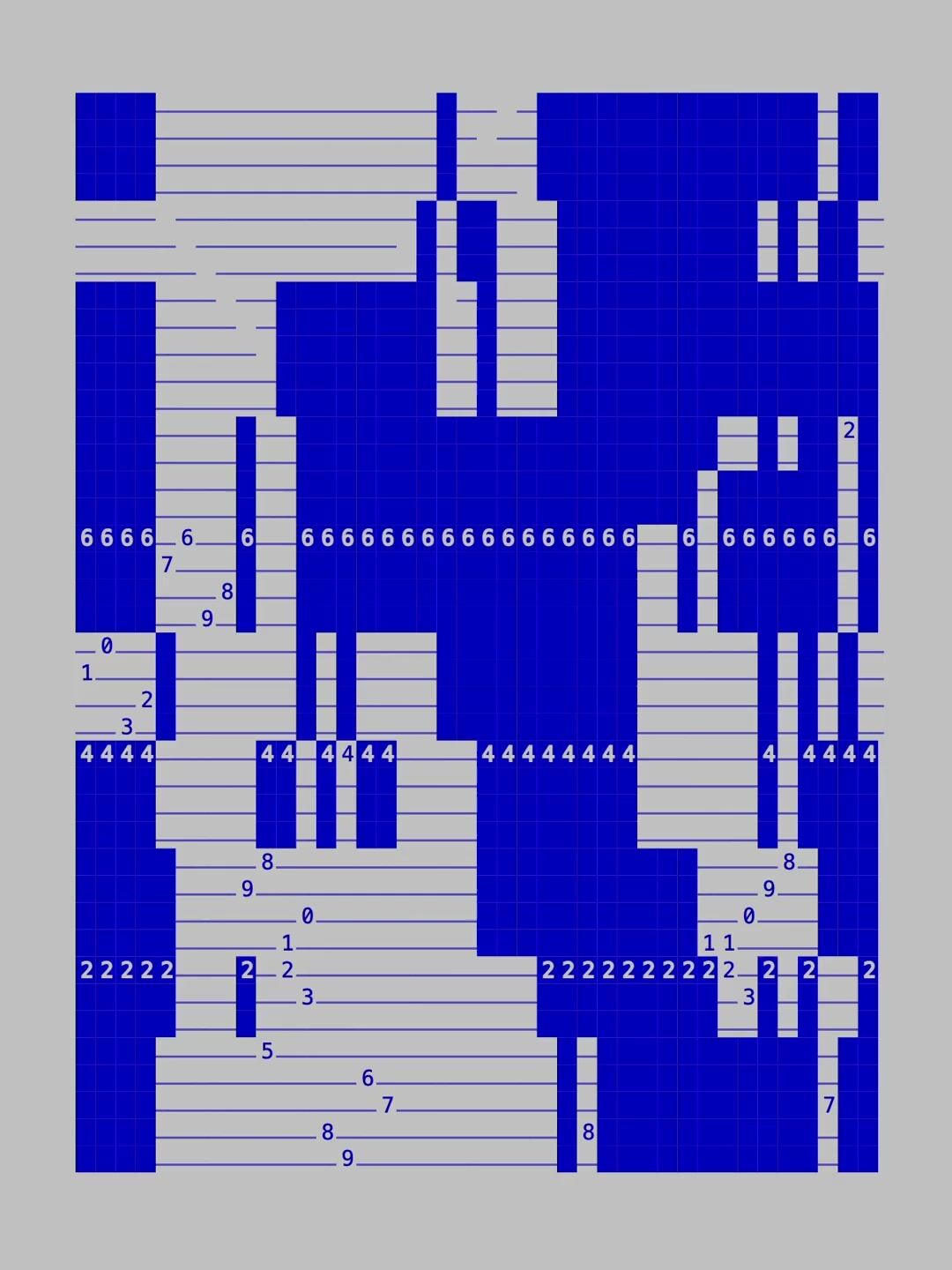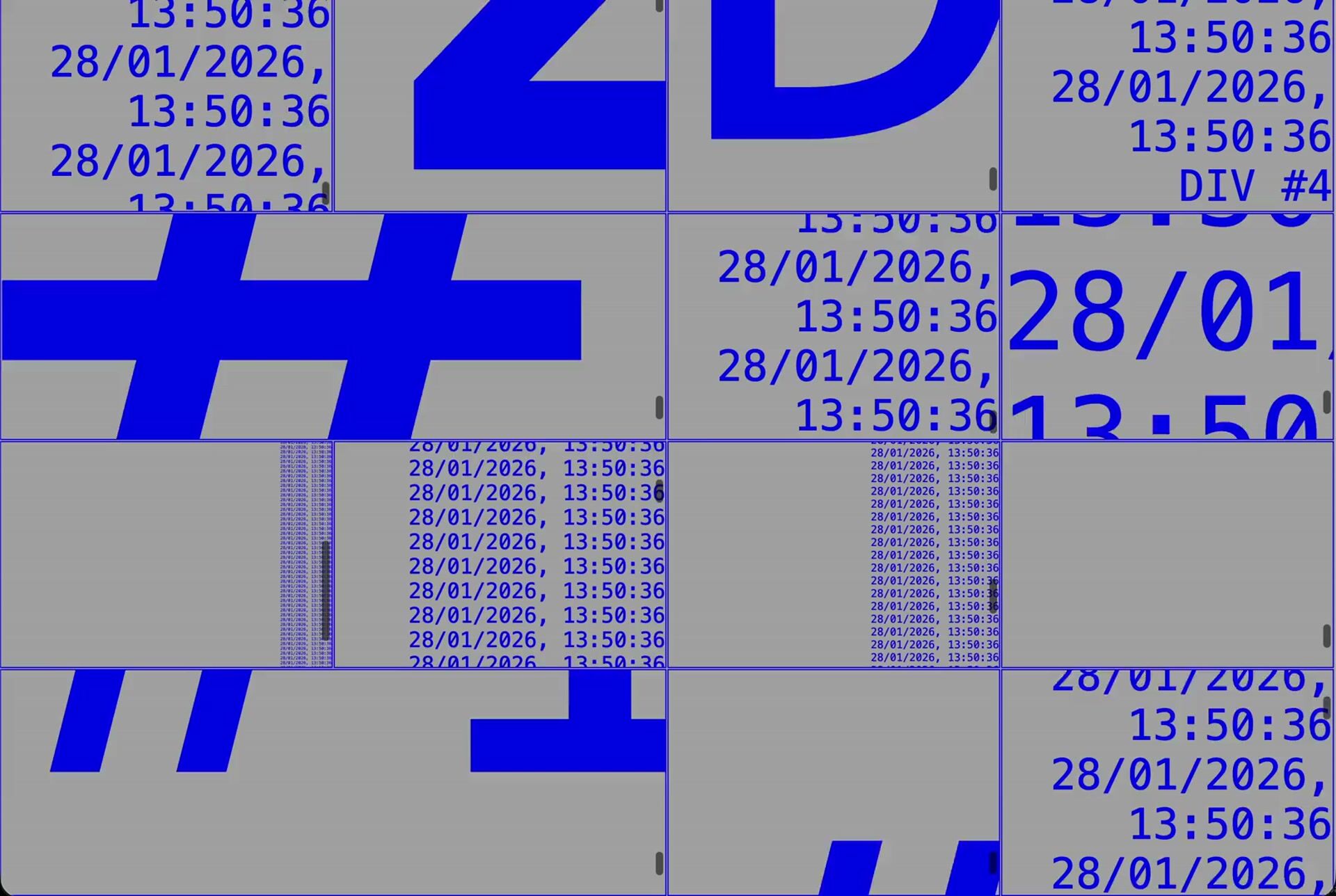 Setting up a grid of text-based <div> elements, each with automatic scrolling. The rhythm of the sound is driven by the computer’s internal timer, with a twist in how the intervals are divided.
