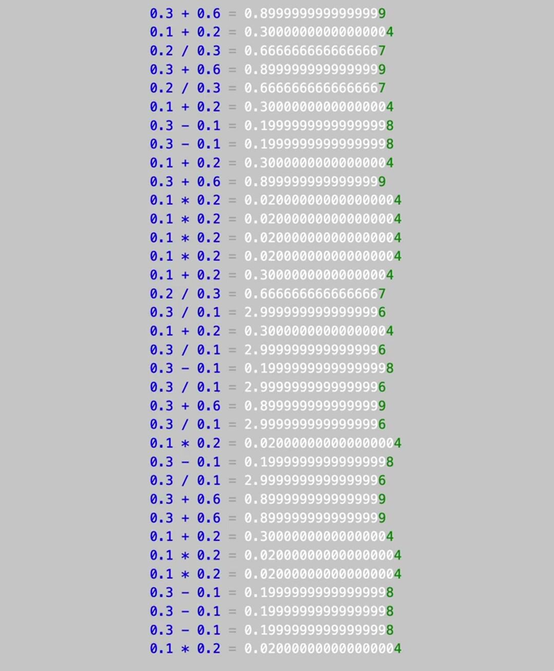 Exposing floating-point precision error, a limitation of binary arithmetic used by computers. Decimal numbers are stored as approximations, not exact values, because many cannot be represented precisely in base-2. When opera...
