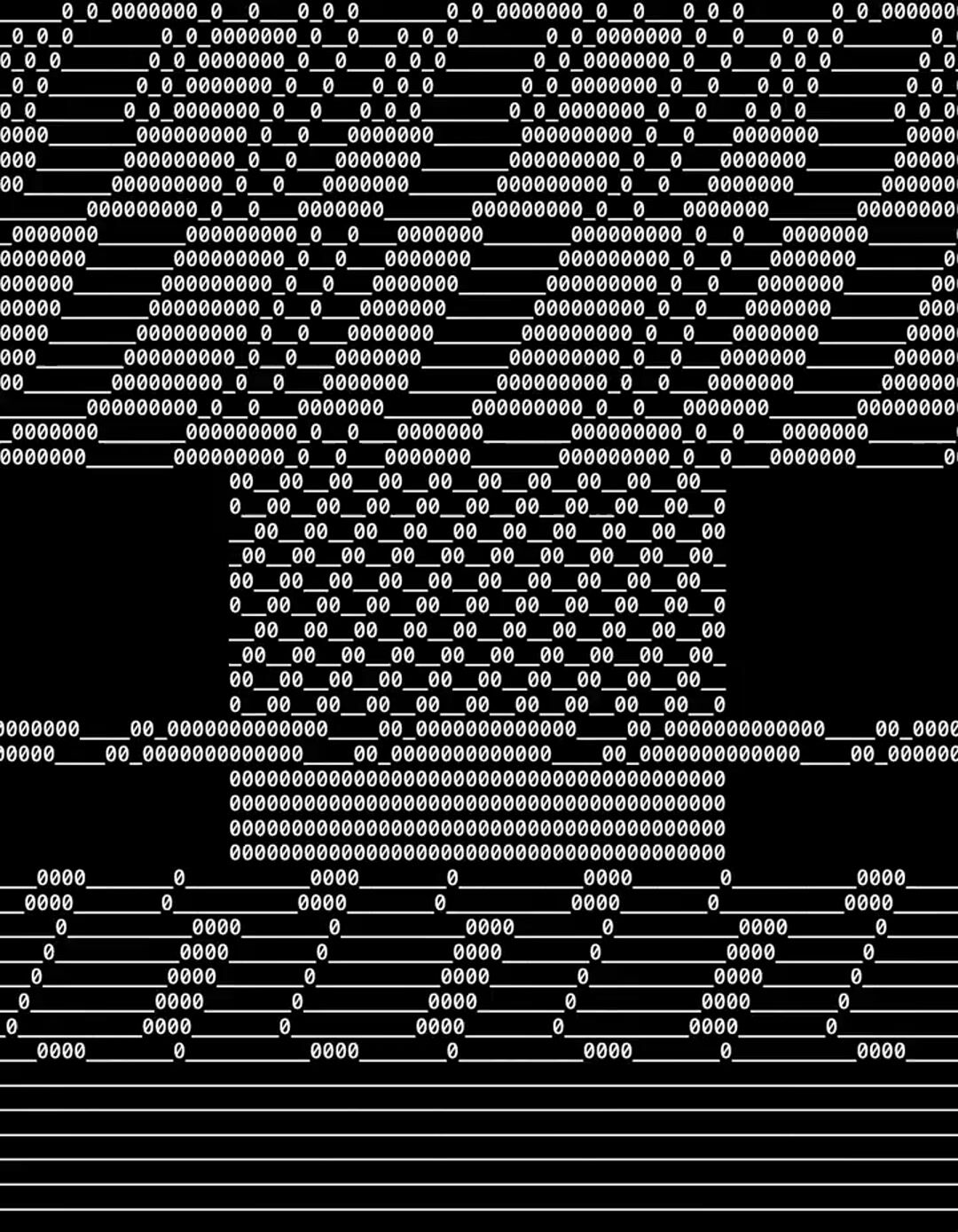A realtime audiovisual piece made with '0's and '_'s using ◾ and ◽ colors. Infinite scroll, speed controlled by mouse / touch.