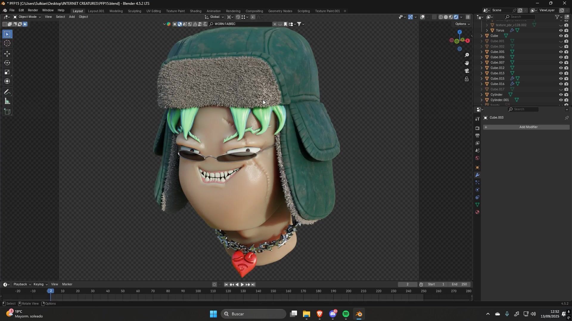 The model was sculpted in virtual reality (the pink character is me in VR),