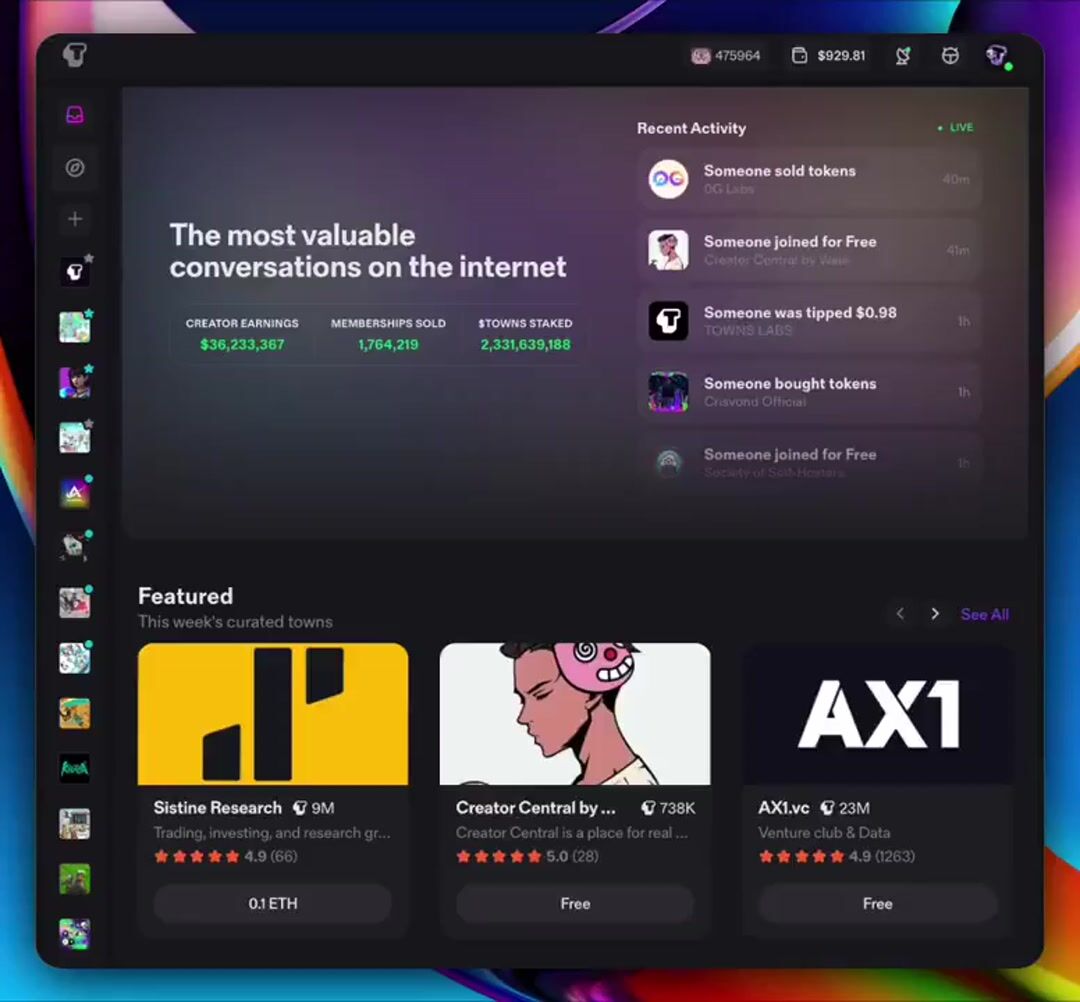 Towns is when you unite messaging, communities, earning, and crypto in one place. Where your conversations become currency. Join us
