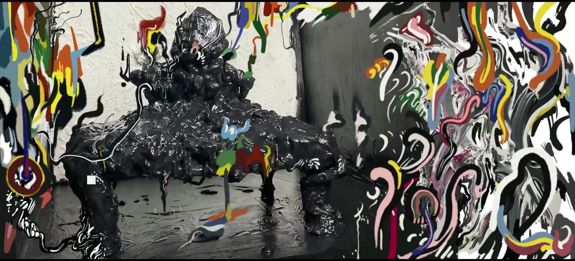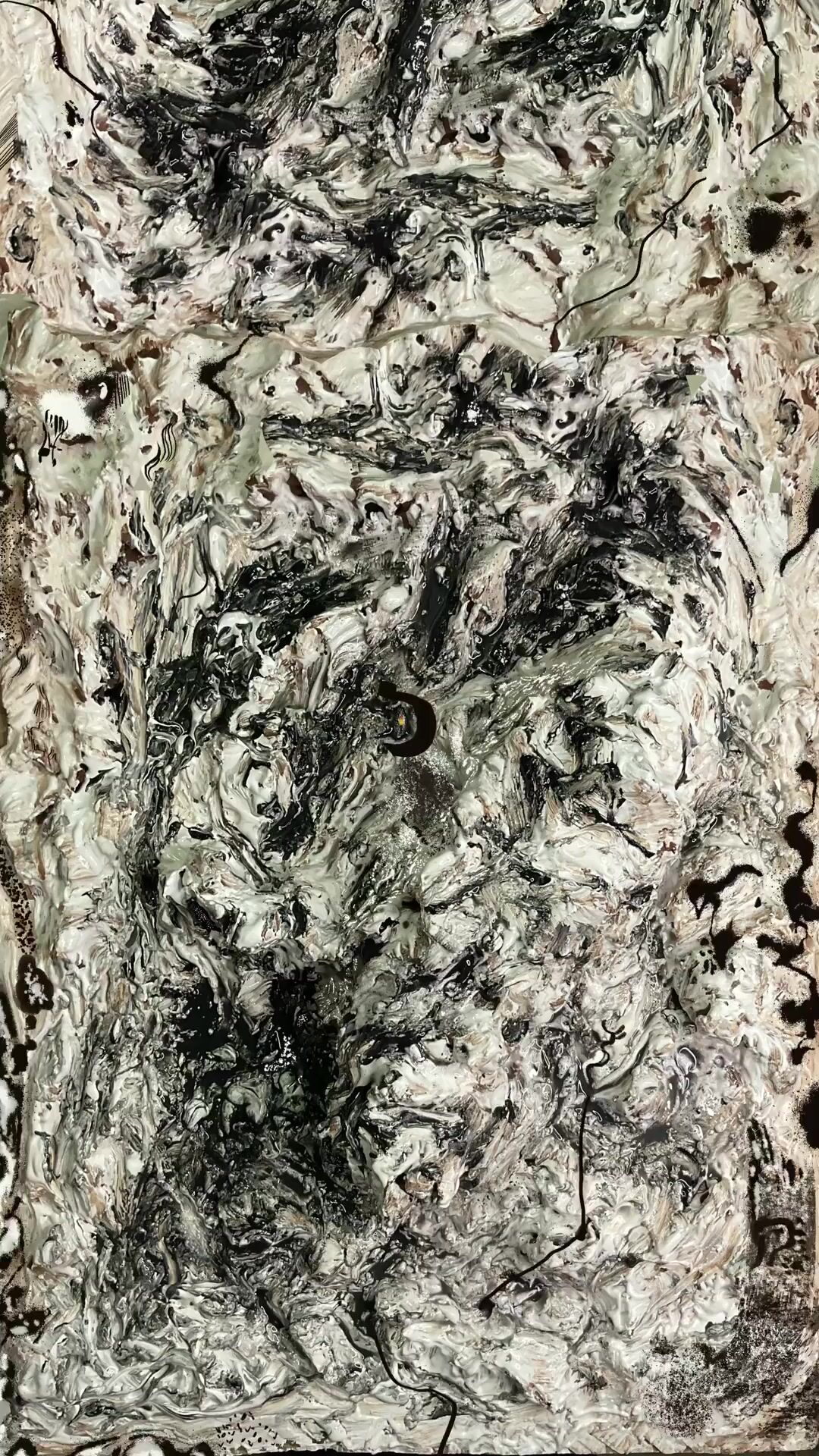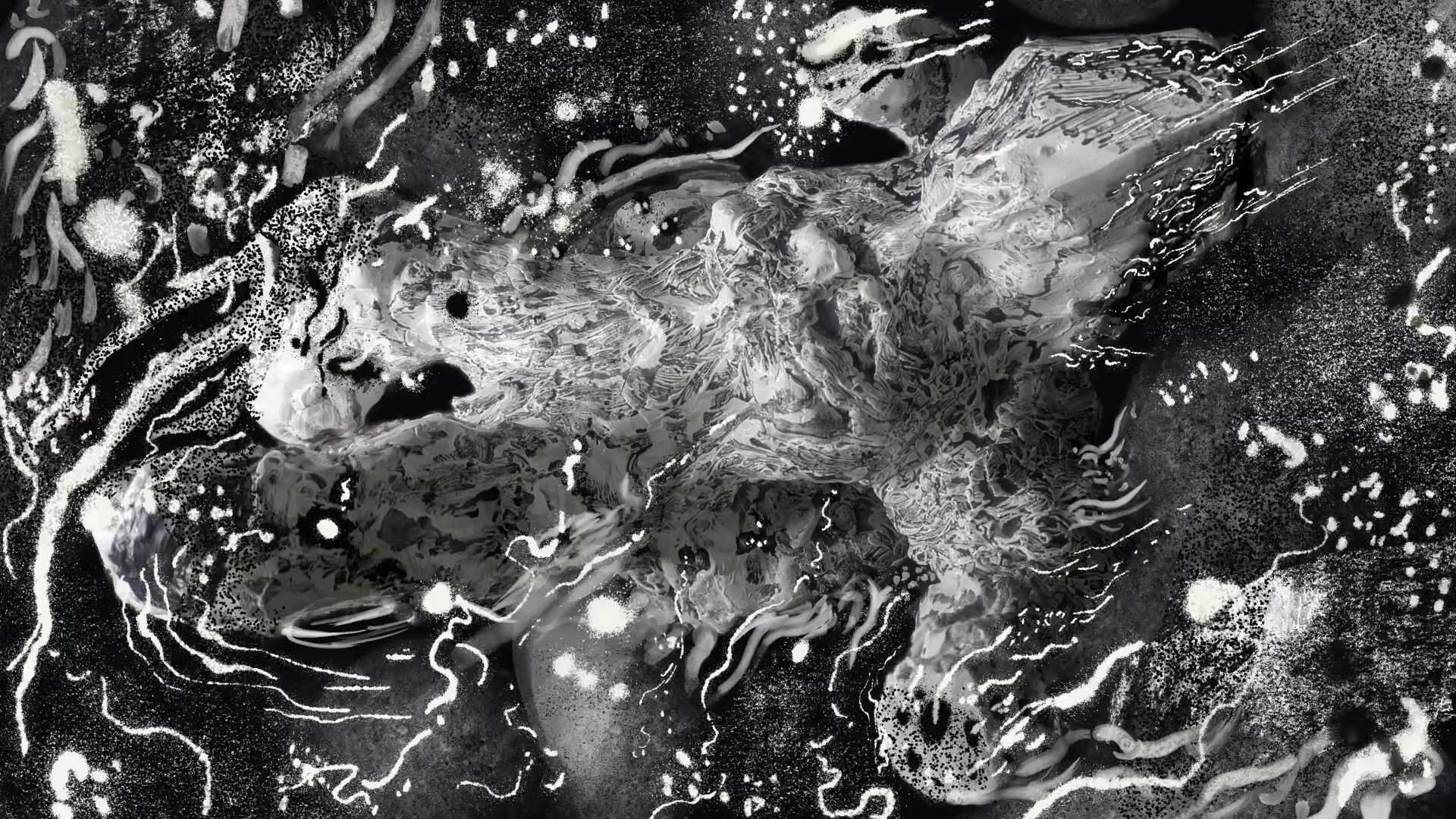Basic elements: Charcoal, soot, black sand, cracked plaster, digital pain...