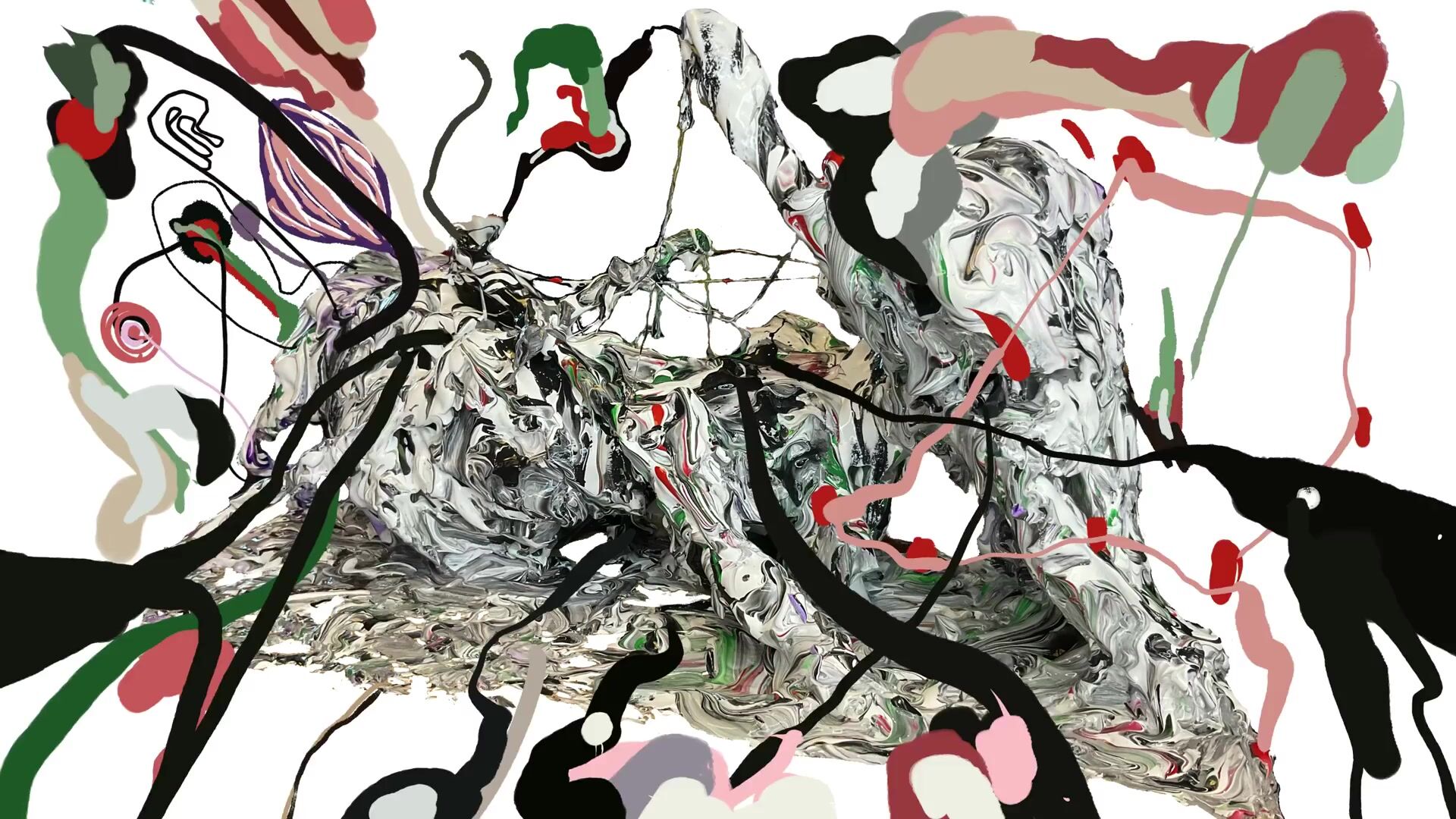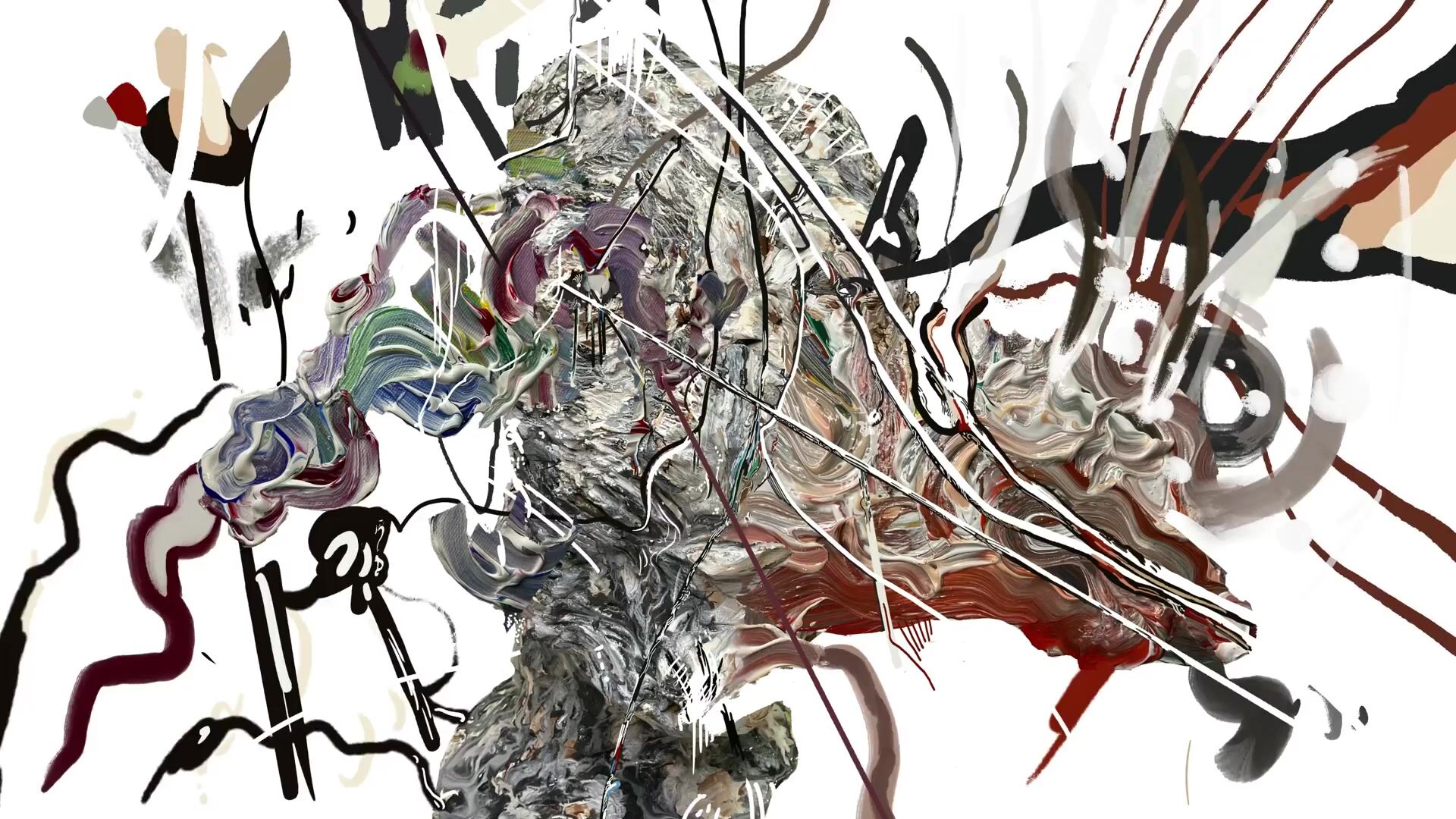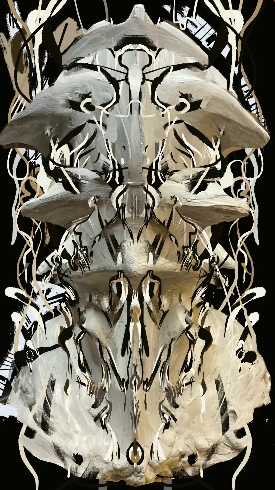 Basic elements: Charcoal, soot, black sand, cracked plaster, digital pain...
