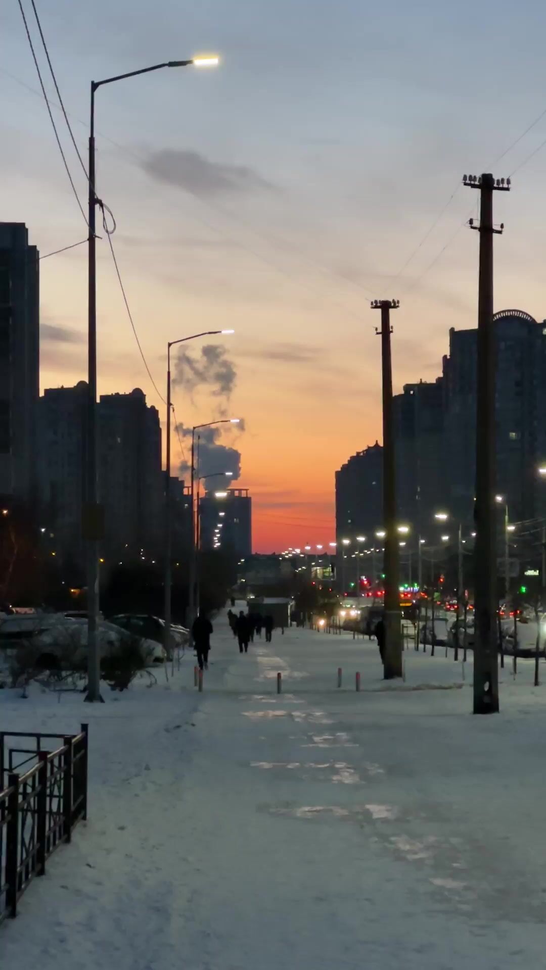 Streetlights glow warmer than usual,